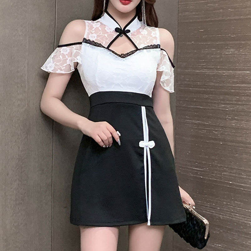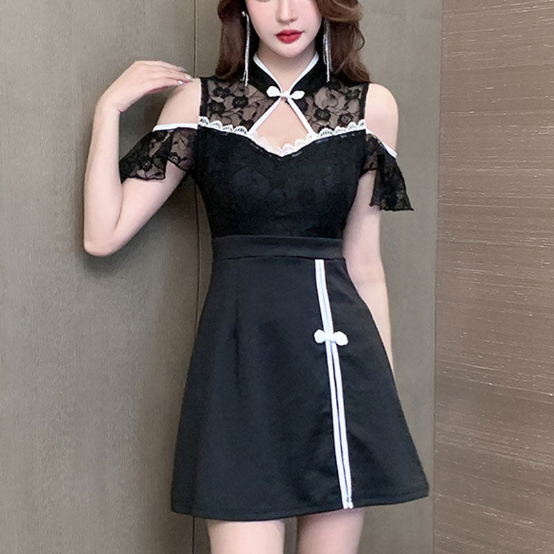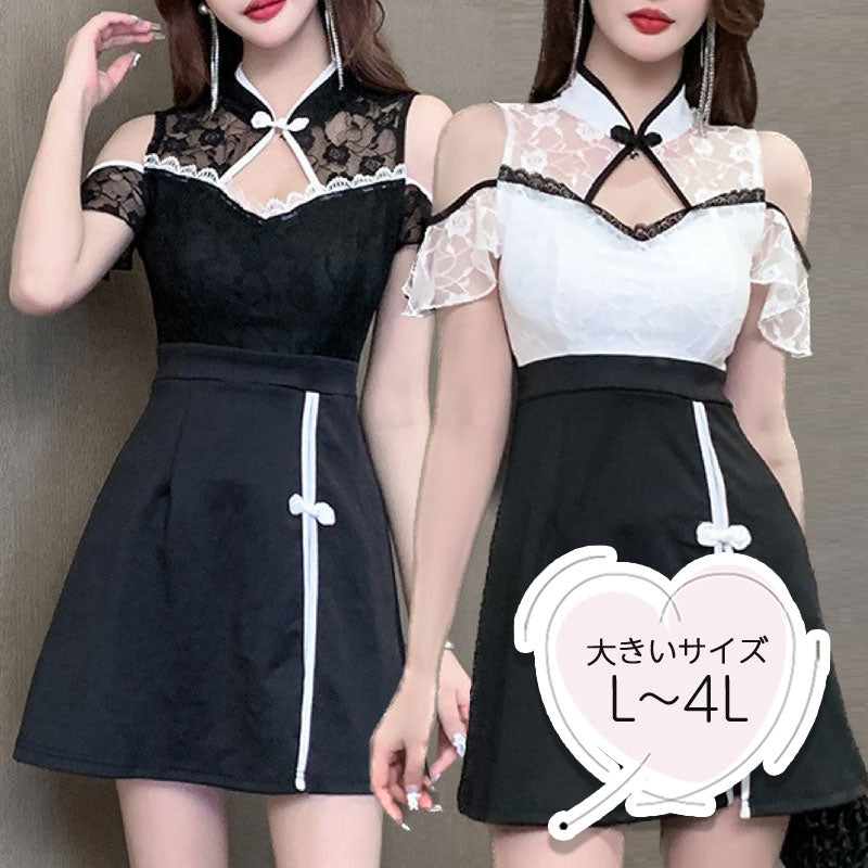 大きいサイズレディースChinese-style off-the-shoulder lace slit dress (L/LL/3L/4L) / Cabaret dress / Gal