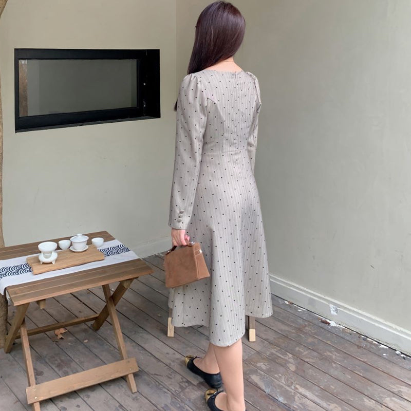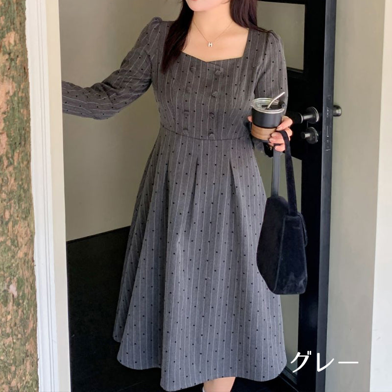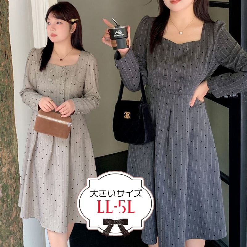 大きいサイズレディースStriped Heart Dot French Dress (LL/3L/4L/5L)