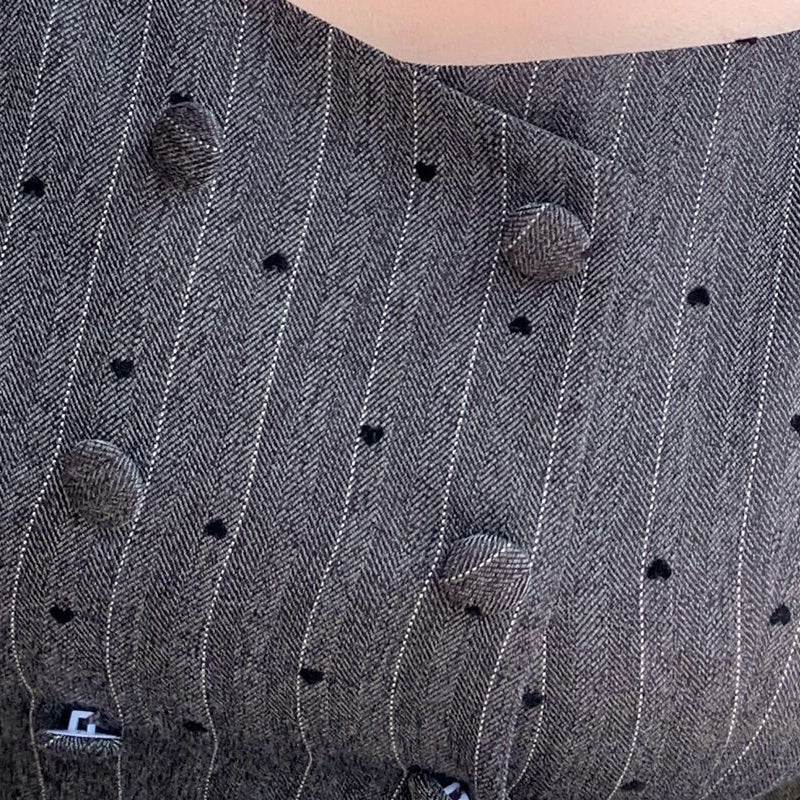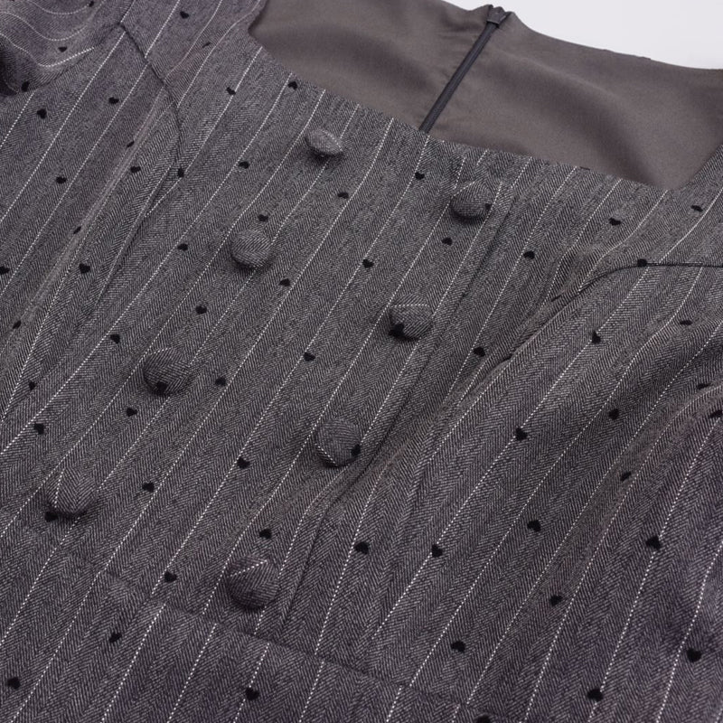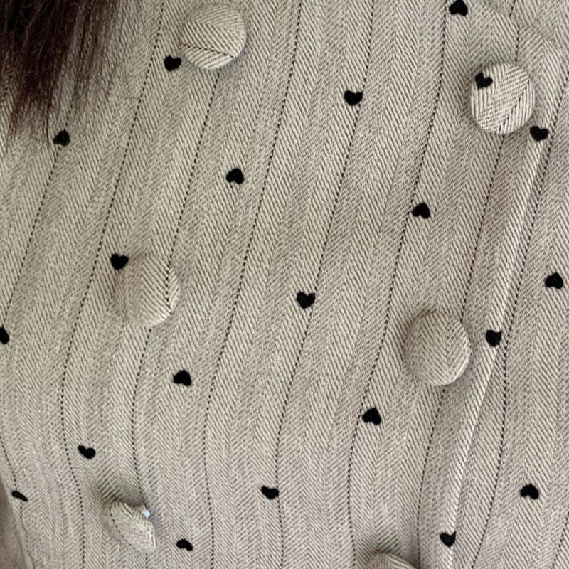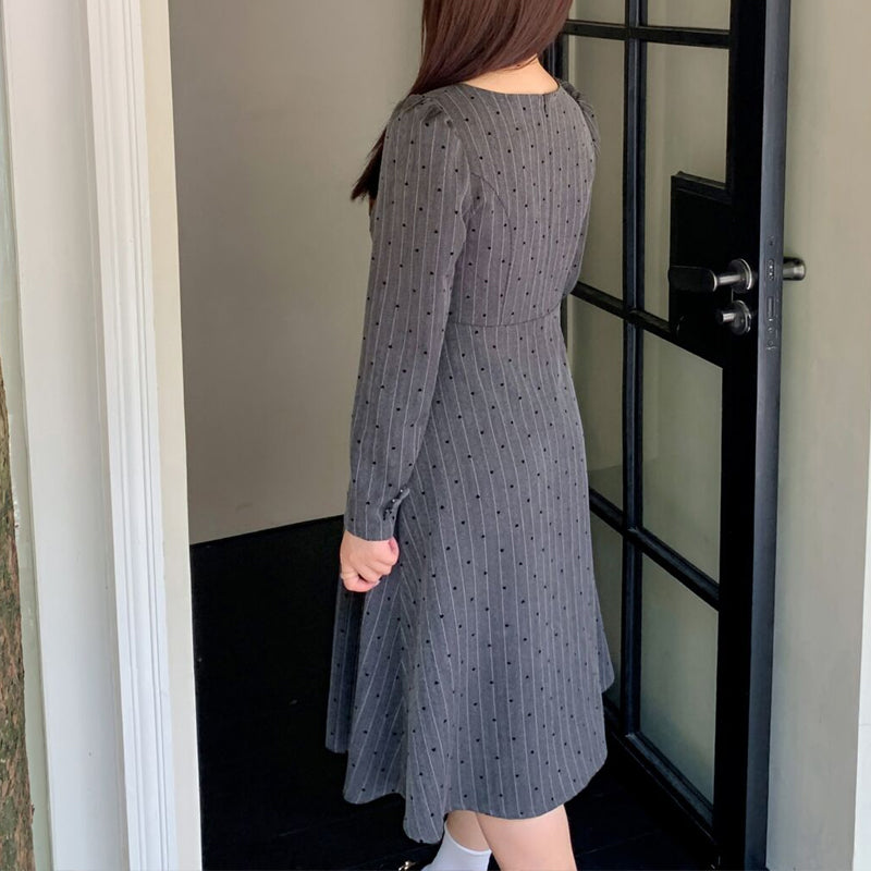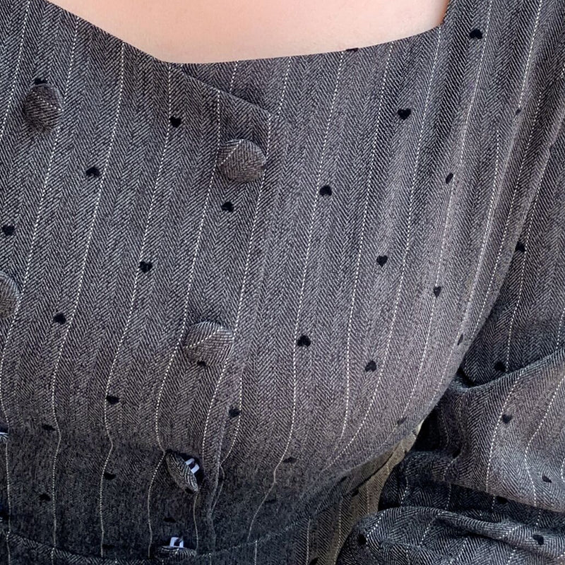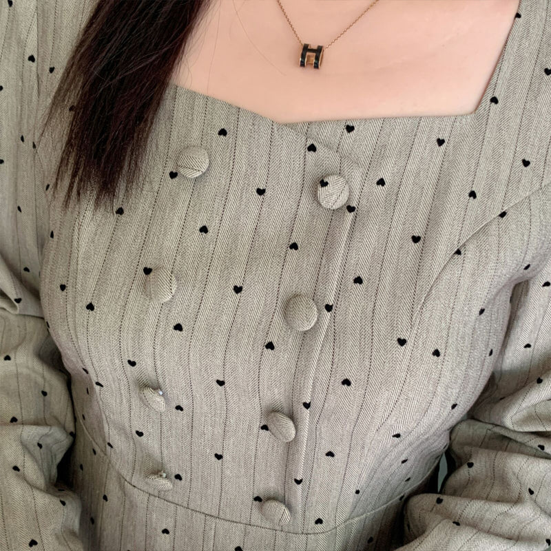 The small heart pattern and delicate stripes are a perfect match, creating a sophisticated yet cute look. The square neckline flatters the décolleté and adds a touch of elegance.