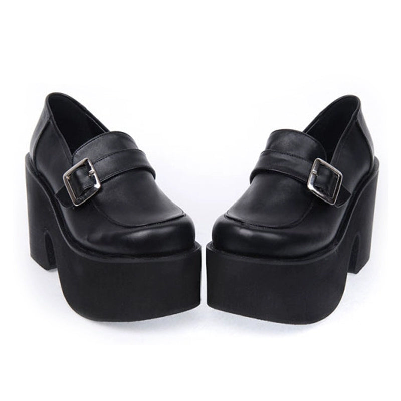 These are popular, classic buckle-style thick-soled pumps.