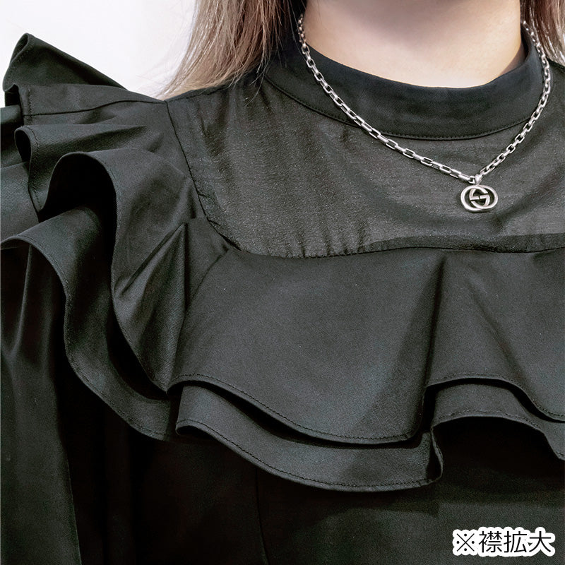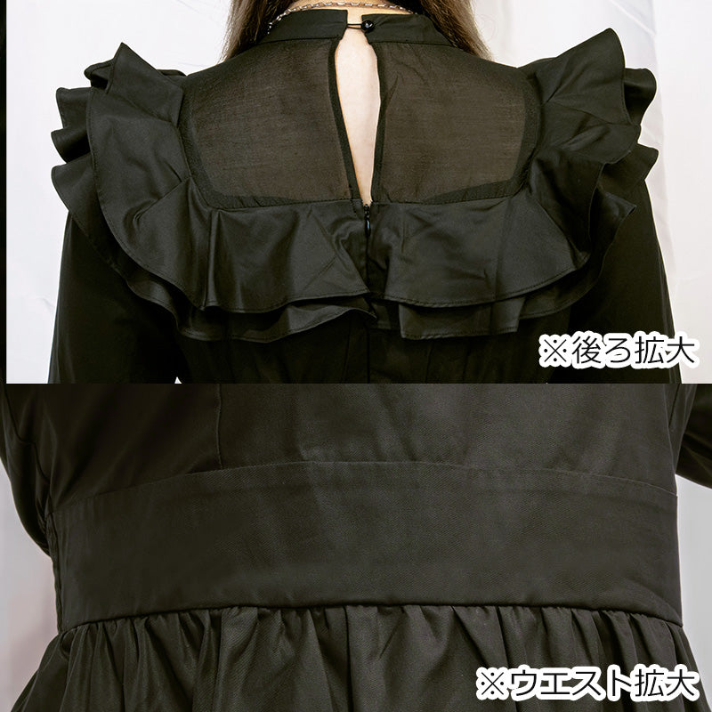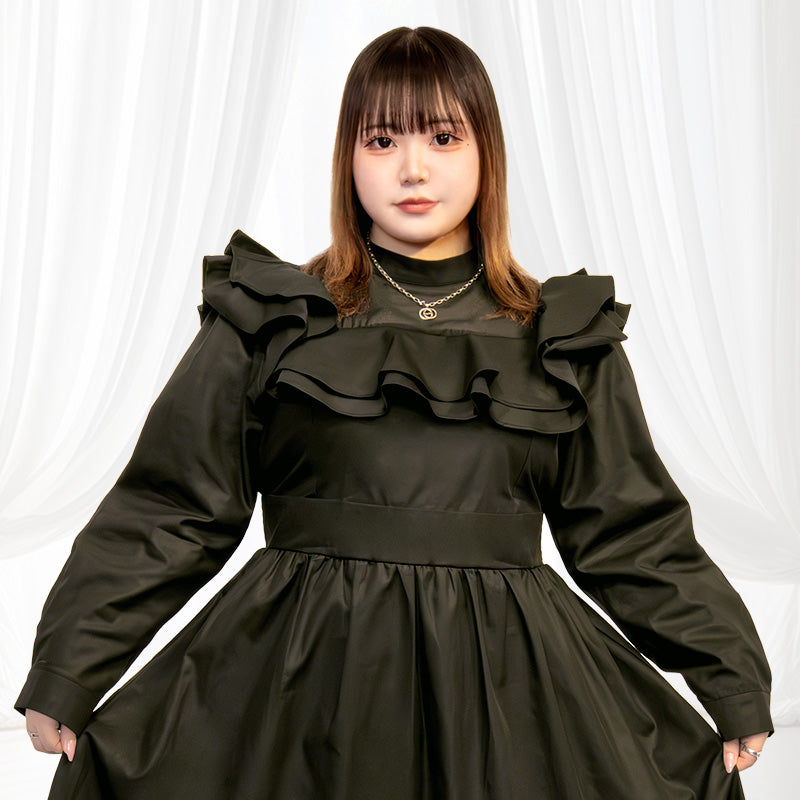 The three-dimensional two-tiered ruffles on the chest and shoulders make the area around the face look gorgeous and look great in photos. The skirt is not too flared and the waist is positioned high, so it makes your legs look longer and also flatters your figure.