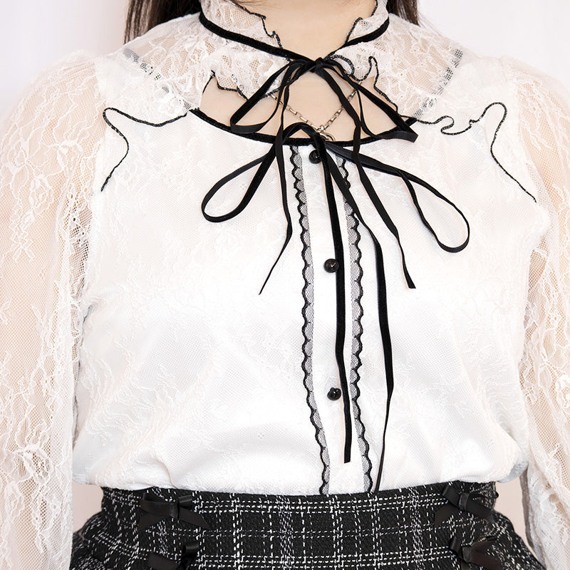 大きいサイズレディースPure White Cupid Ribbon Lace Top (3L/4L/5L/6L) / Taberunosky