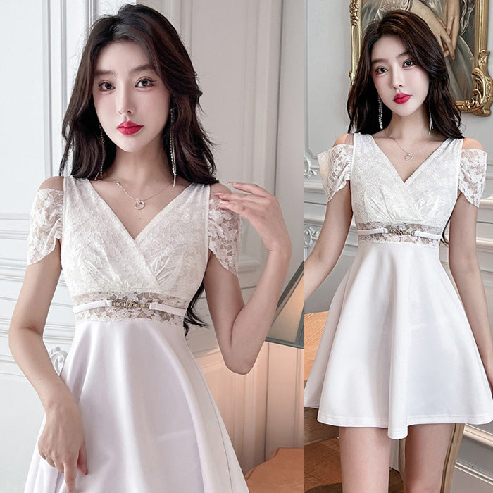 大きいサイズレディースGoddess White Mini Dress (M/L/LL/3L/4L) / Cabaret Dress / Gal