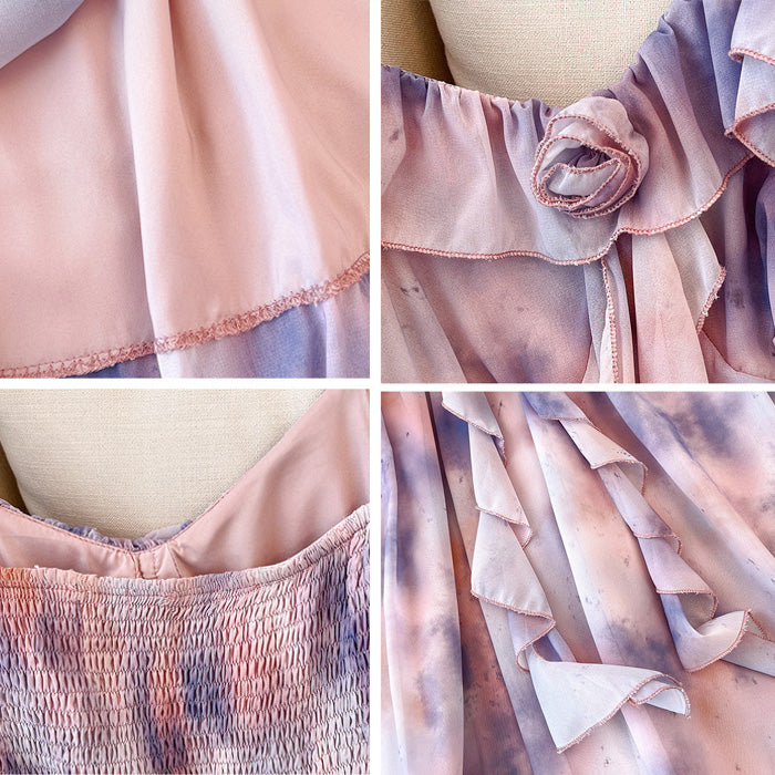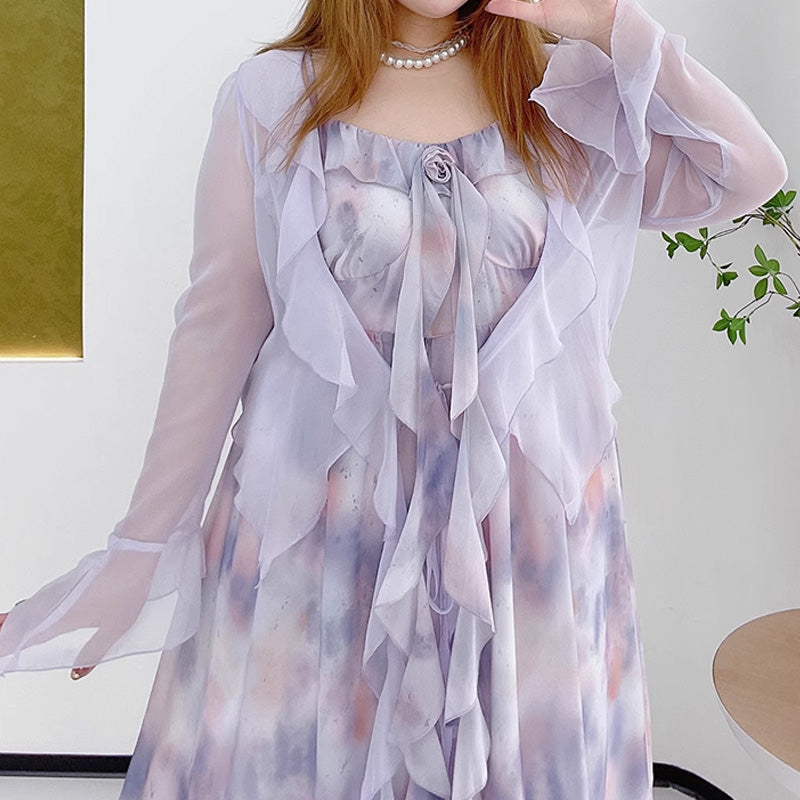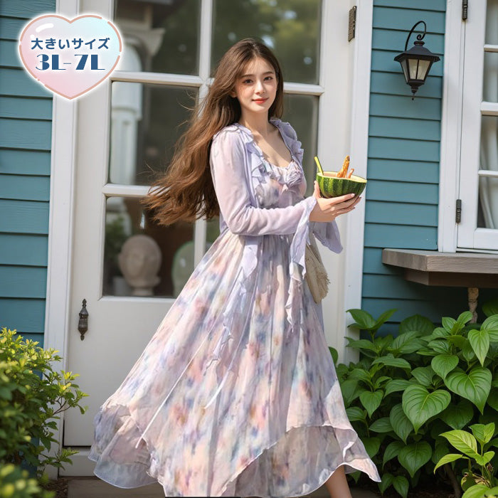 大きいサイズレディースOlder sister's ombre ruffle floral cami dress and cardigan 2-piece set (3L/4L/5L/6L/7L)