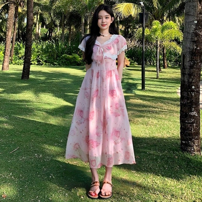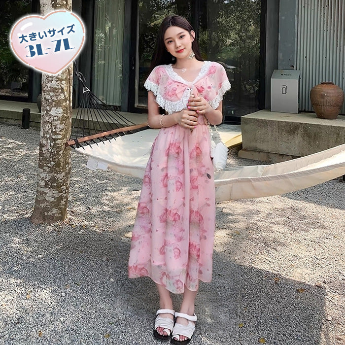 大きいサイズレディースRose Bouquet Lace Ribbon Dress (3L/4L/5L/6L/7L)