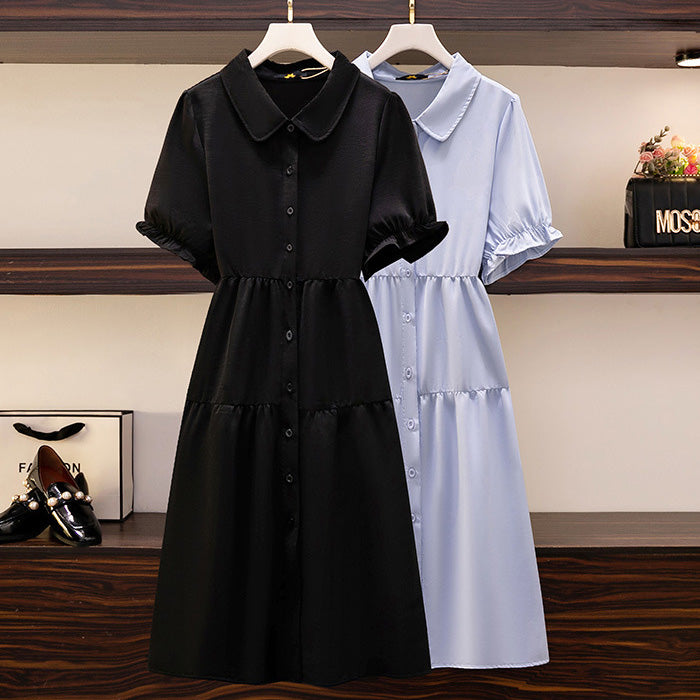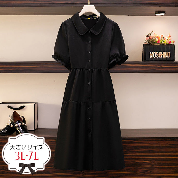 大きいサイズレディースBlack button closure tiered dress (3L/4L/5L/6L/7L)