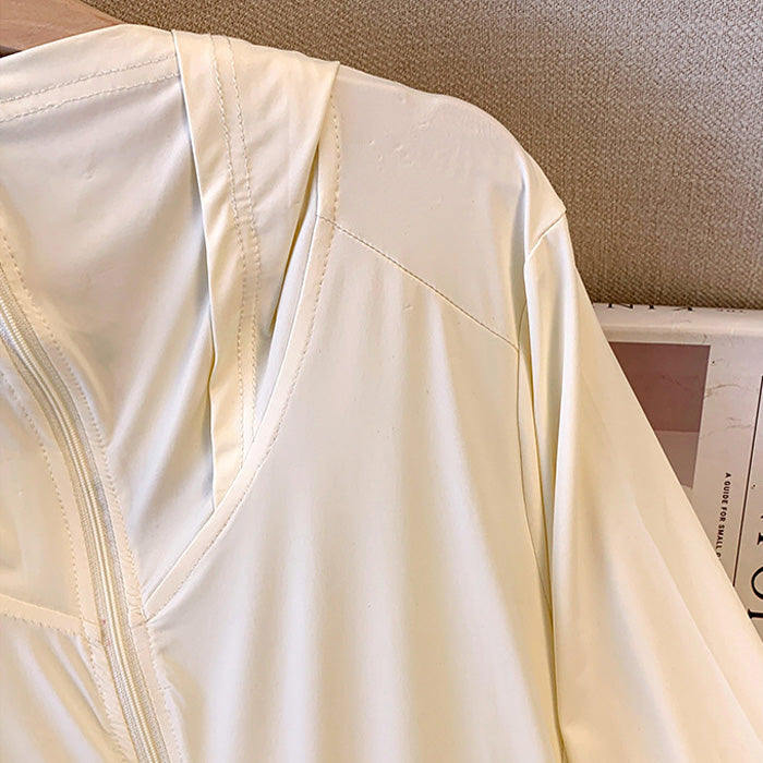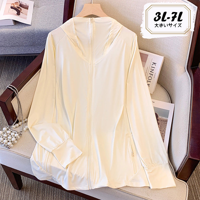 大きいサイズレディースLightweight, sun-protective yellow, loose-fitting parka (3L/4L/5L/6L/7L)