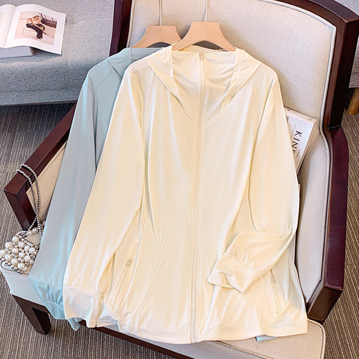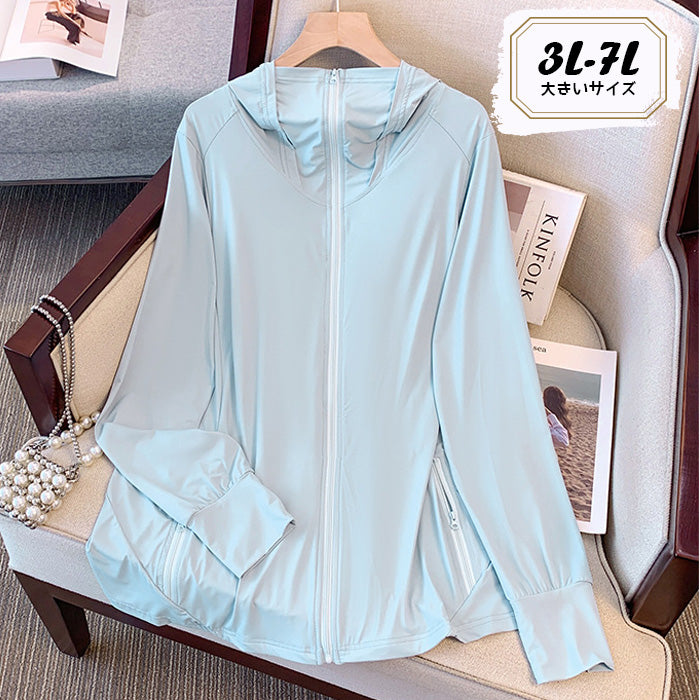 大きいサイズレディースLightweight, sun-protective, blue, loose-fitting parka (3L/4L/5L/6L/7L)