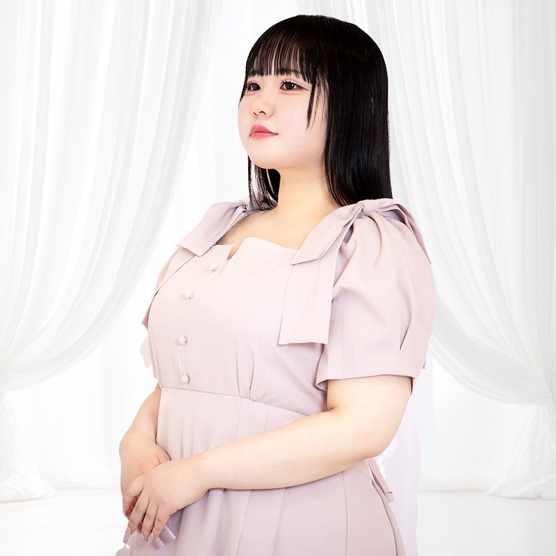 A magical dress in melting lavender pink with a large ribbon on the shoulders that makes it incredibly cute.