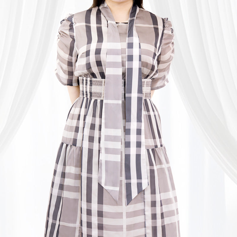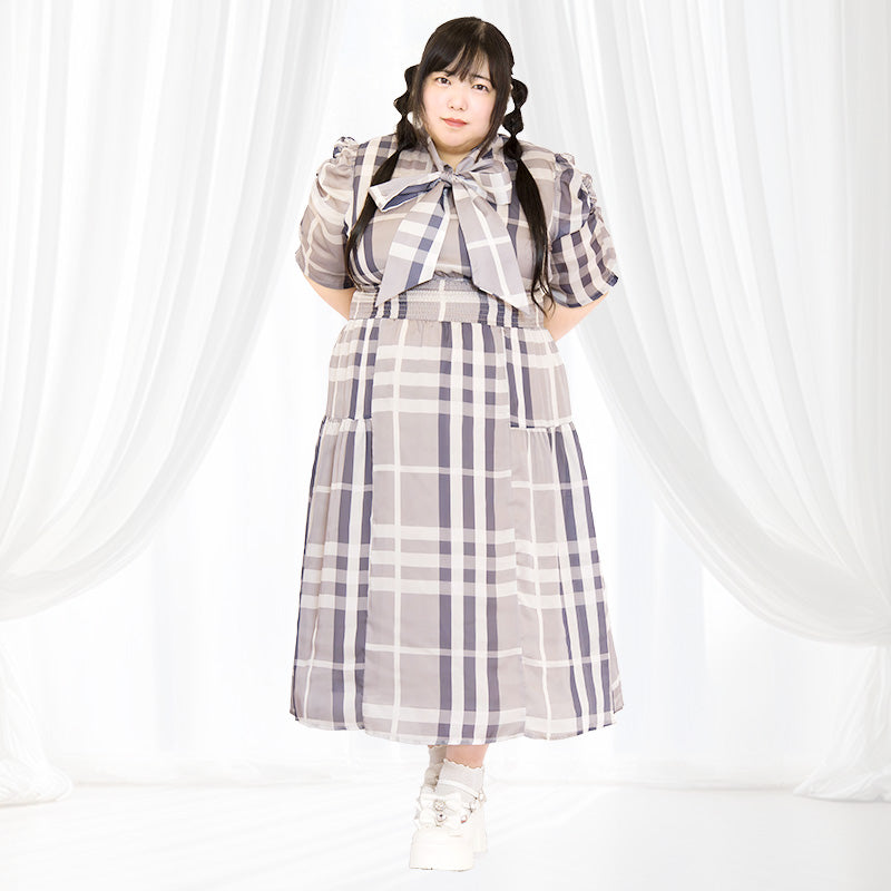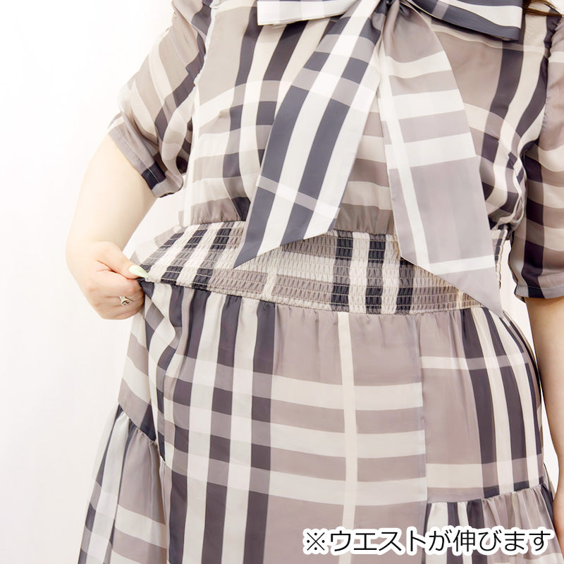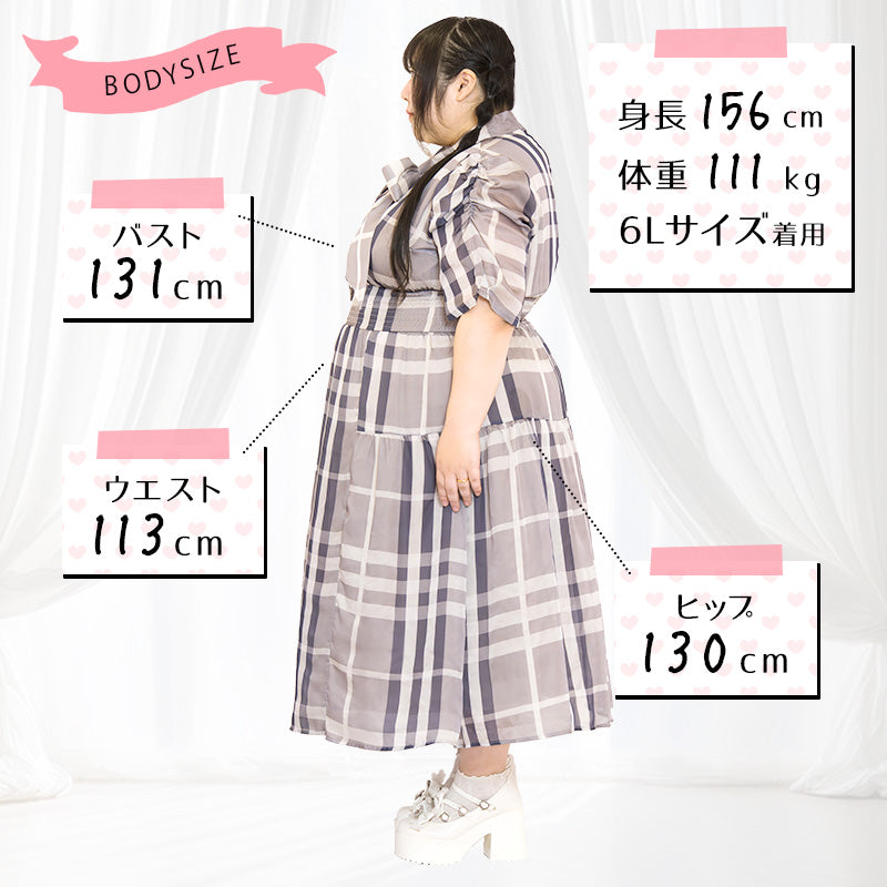 大きいサイズレディースParfum Check Dress, Gray (3L/4L/5L/6L) / Taberunosky