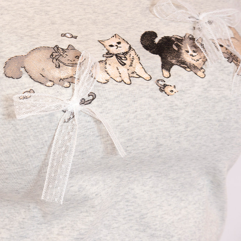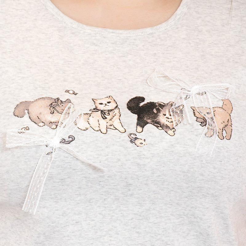 The print of the loosely lined up cats is irresistibly cute ♪