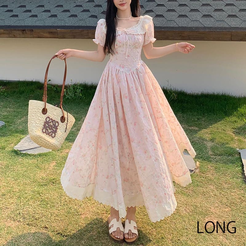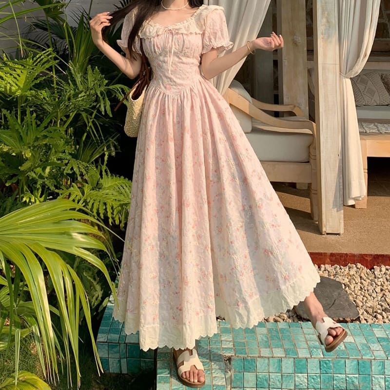 大きいサイズレディースSweet Bouquet Cotton Flared Long Dress (L/LL/3L/4L/5L)