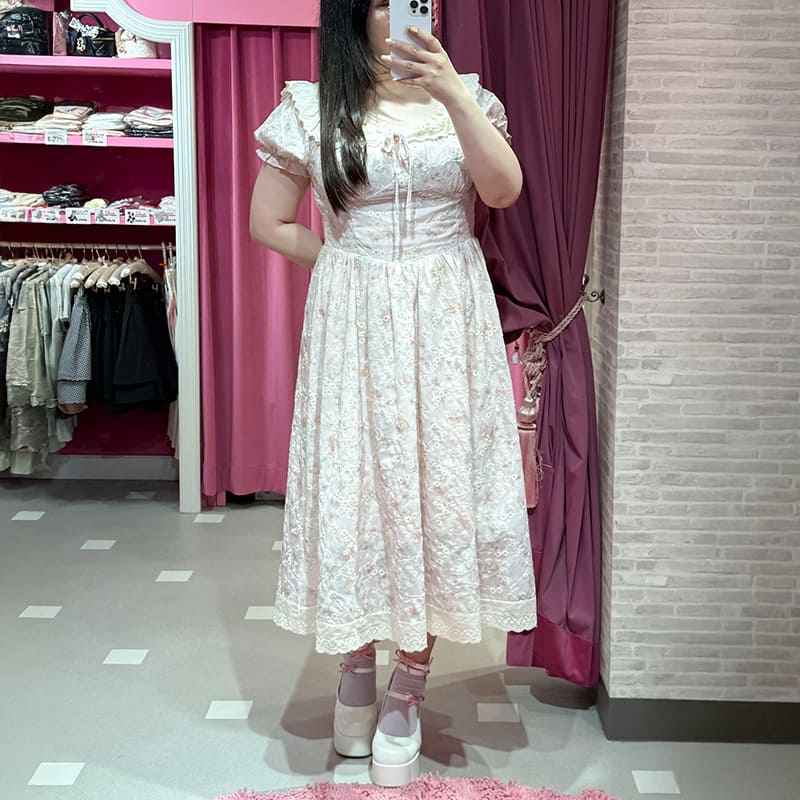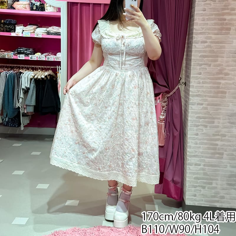Available in sizes L to 5L, it's designed to be loose around the bust and waist. It's a magical piece that gently covers your figure while creating a slender silhouette. The gathered bust and ruffled sleeves add a sweet touch, while the waistline is cut to create a leg-lengthening effect.