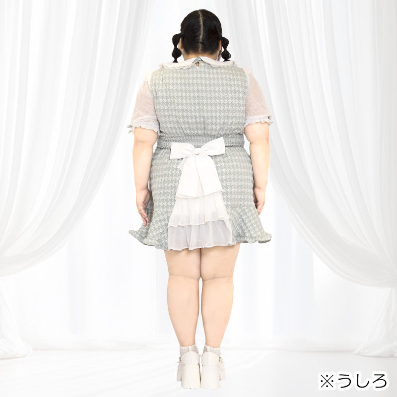 The softly flowing ruffles and classic houndstooth pattern create an exquisite balance, making this a statement piece that combines sweetness and sickly cuteness.