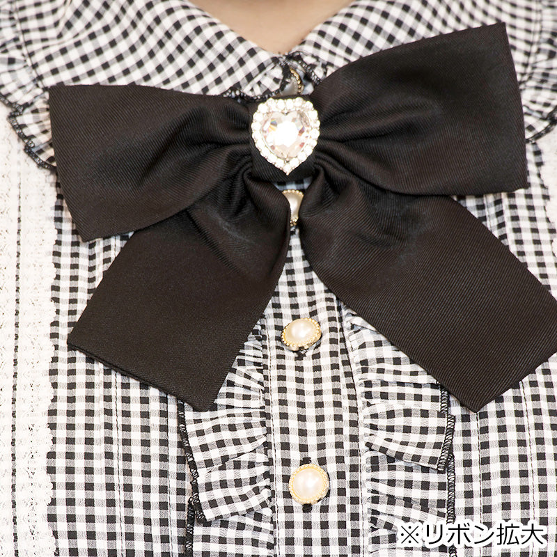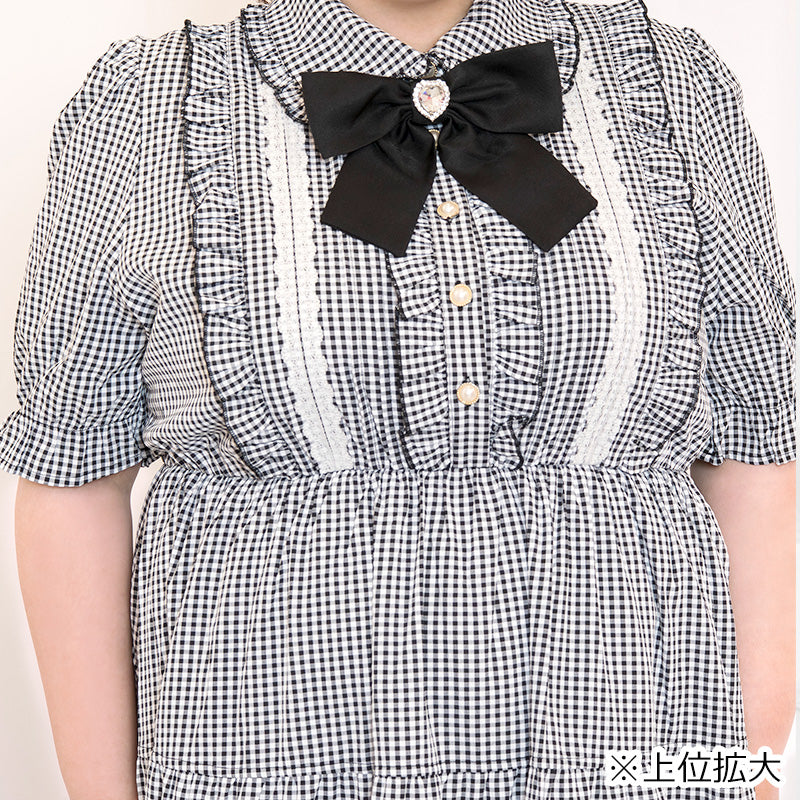 The three-dimensional pattern with ample space around the bust and the large ribbon and pearl buttons on the chest draw the eye upwards, giving you a slimming effect.