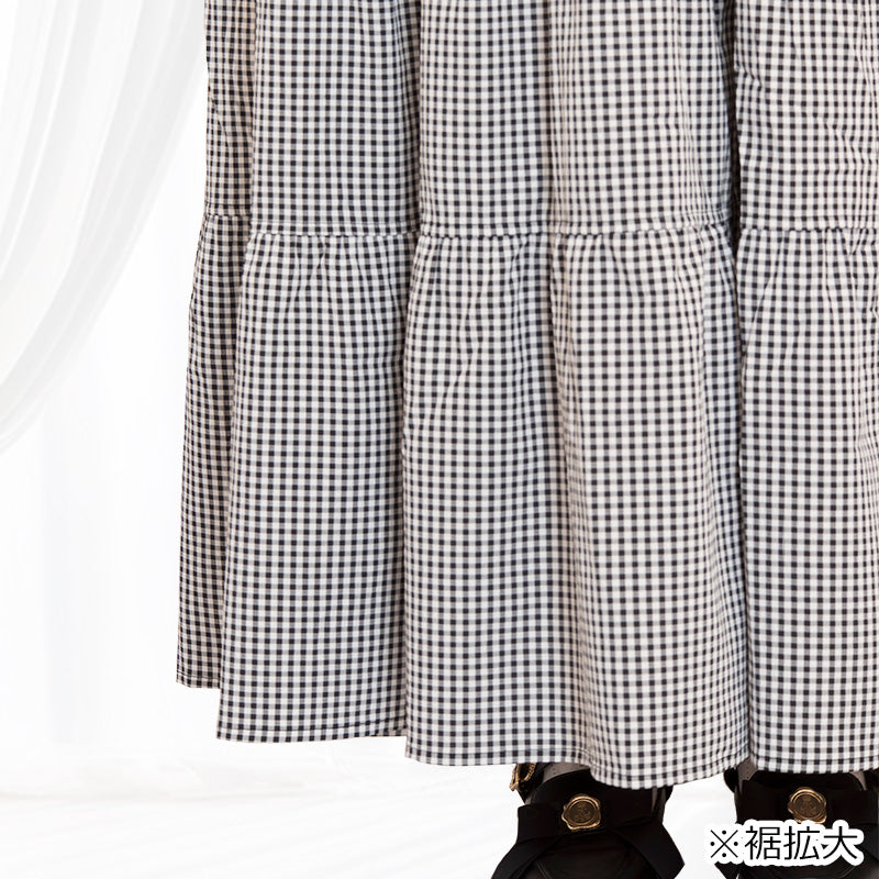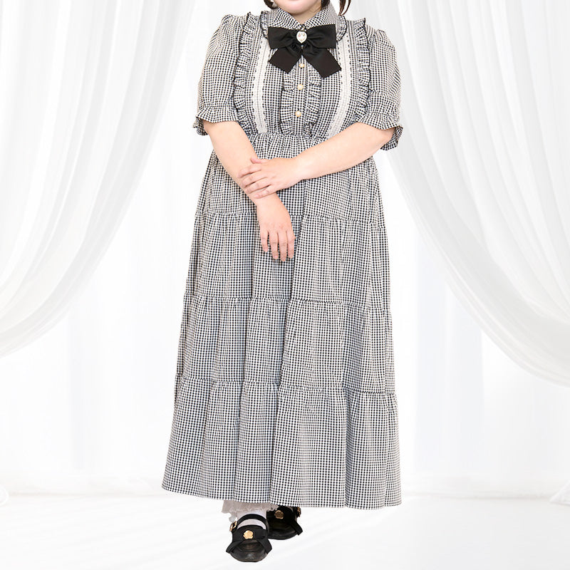 Introducing a plus-size dress featuring a soft, flowing tiered silhouette and a soft gingham check pattern. Designed for plus-size women, this dress subtly covers up any body concerns while showcasing a cute look.