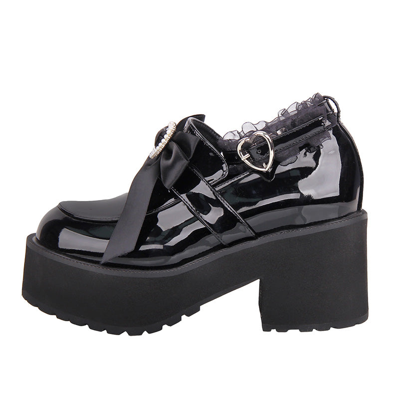 The rounded shape that hugs your feet, along with the pearl heart buckle and large satin ribbon, instantly make your feet stand out, making them perfect for activities like idol activities, concerts, photo shoots, and dates.
