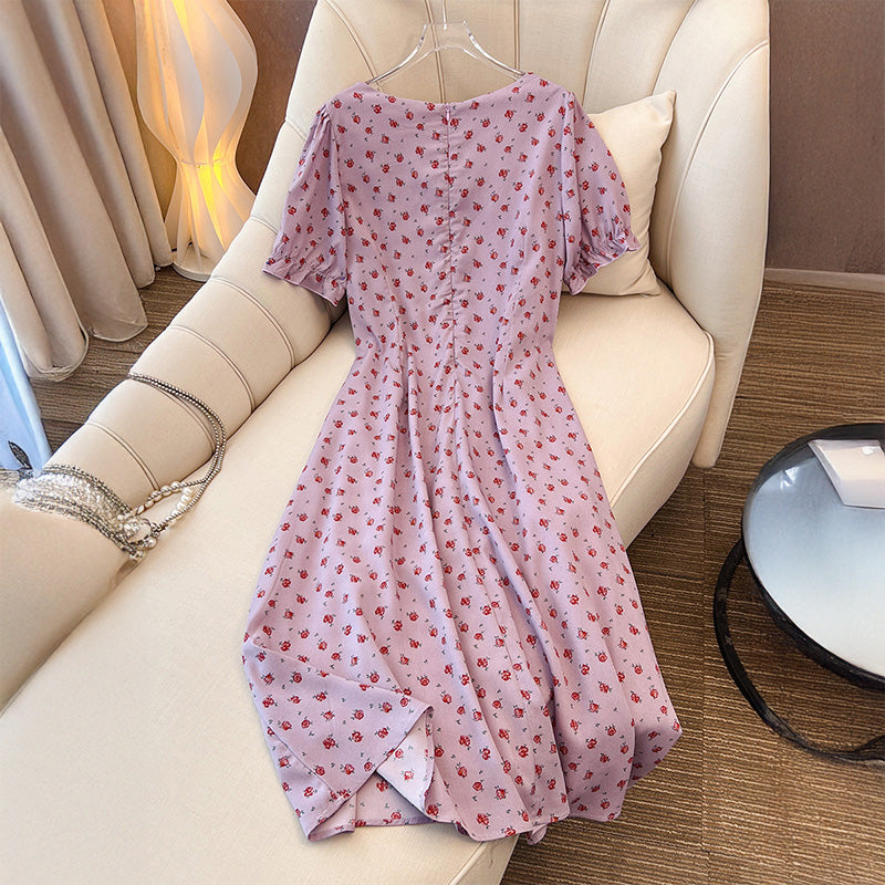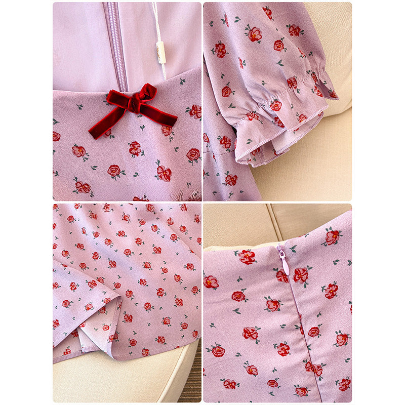 This plus-size dress is perfect for plus - size women who don't want to compromise on cuteness or comfort. The soft, flowing material is dotted with small rose floral patterns, creating a touch of sweetness with a touch of elegance. The square neckline flatters the décolleté, while the soft, flared sleeves naturally conceal the upper arms. The high cut and gentle A-line silhouette accentuate the vertical lines, beautifully shaping the waist, hips, and lower abdomen.