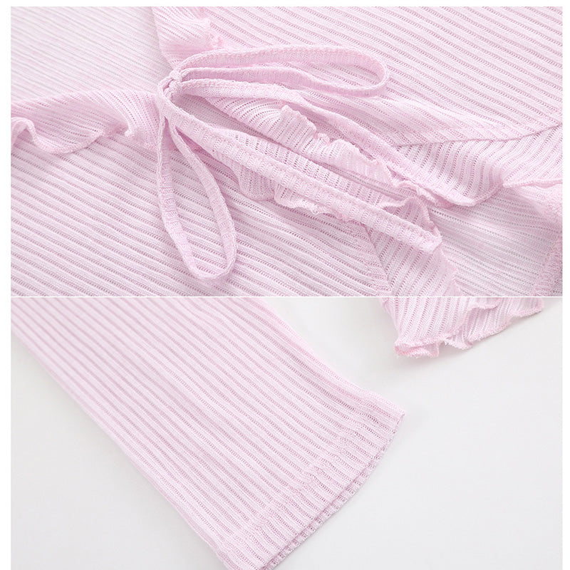 The front opening is designed with a ribbon ties, which naturally camouflages the stomach area without constricting it.