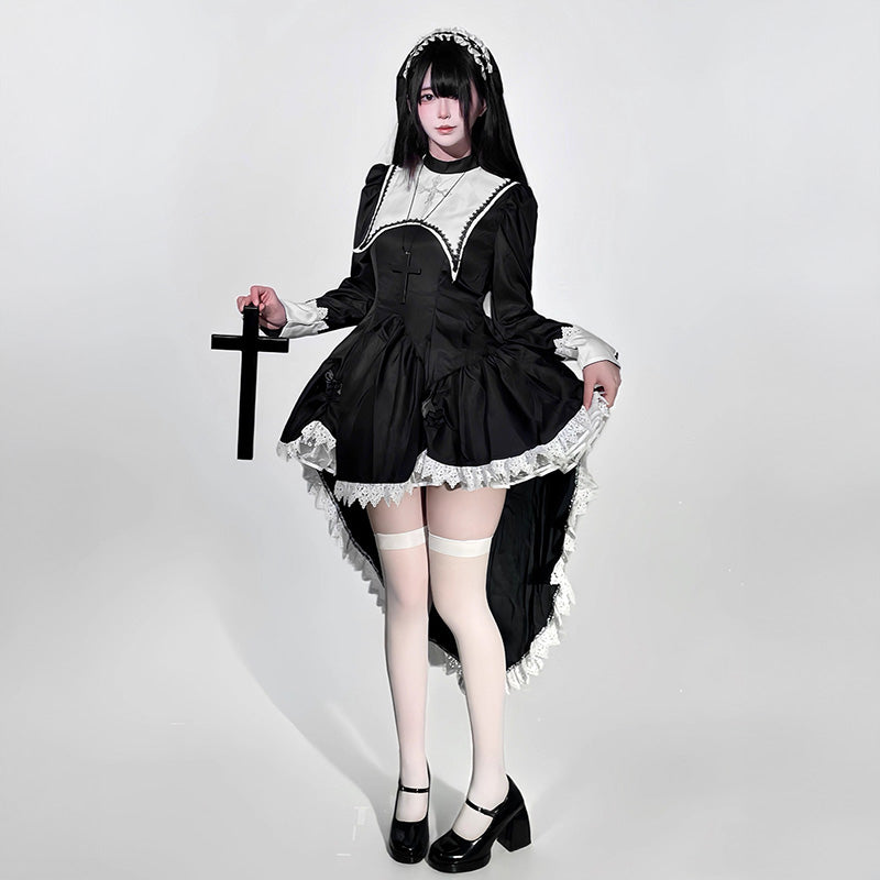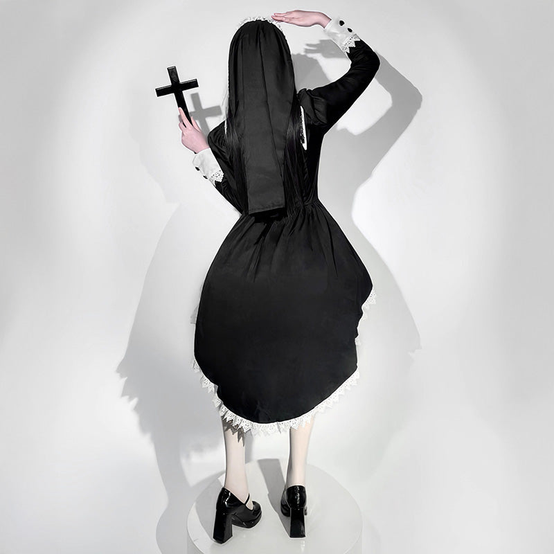 A Halloween dress with a nun-style design that exudes a mysterious atmosphere.