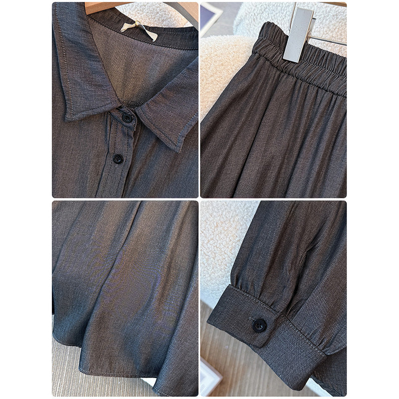 Introducing an elegant and versatile dark gray set that is perfect for women in their 20s to 50s who wear plus sizes.