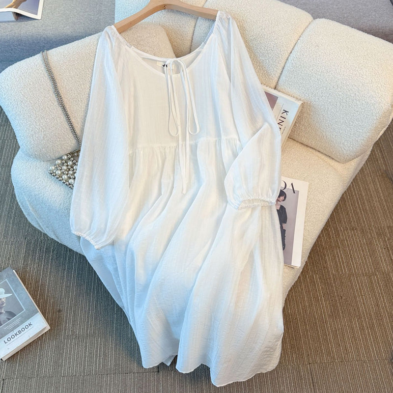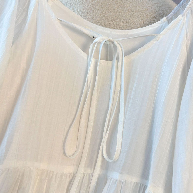 There is a ribbon accent on the chest, giving it a simple yet feminine impression.