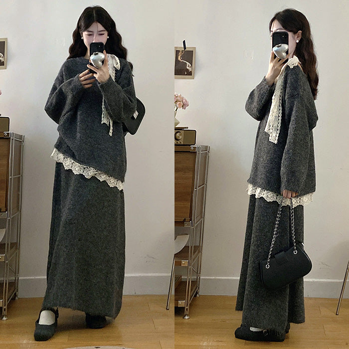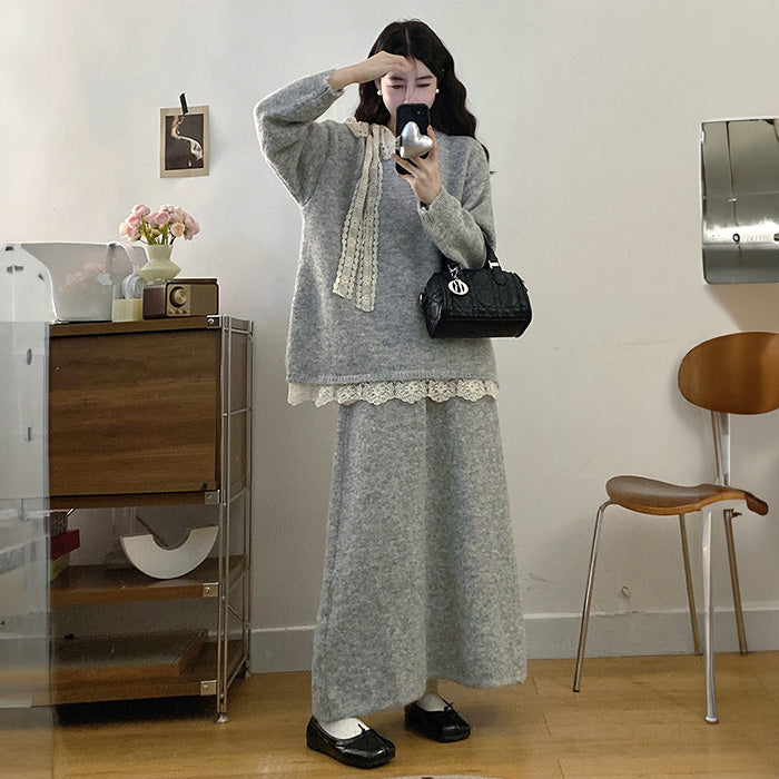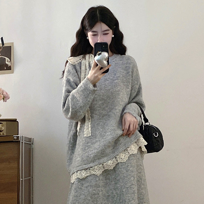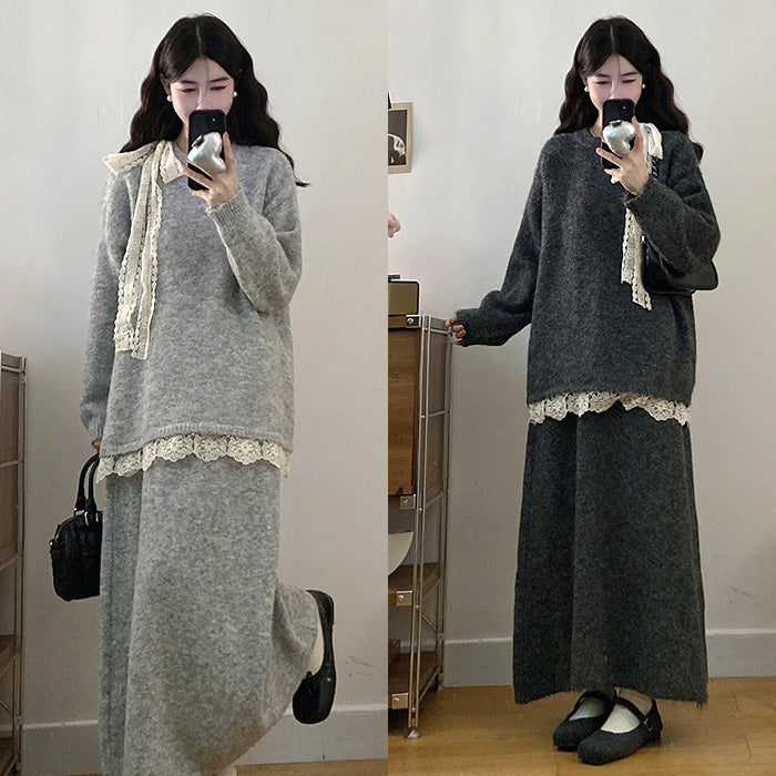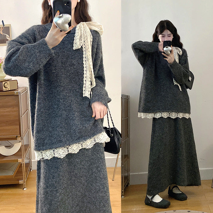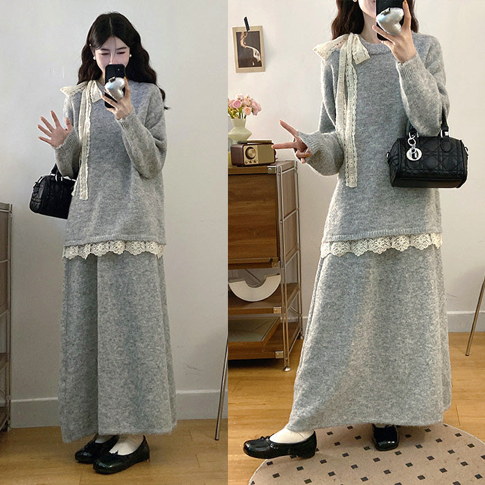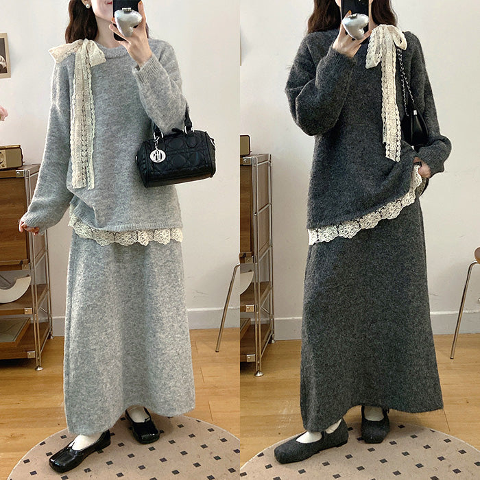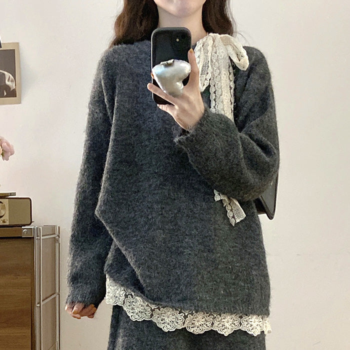 ふんわり柔らかいニット素材に、上品なレースとリボンをあしらったデザインは、