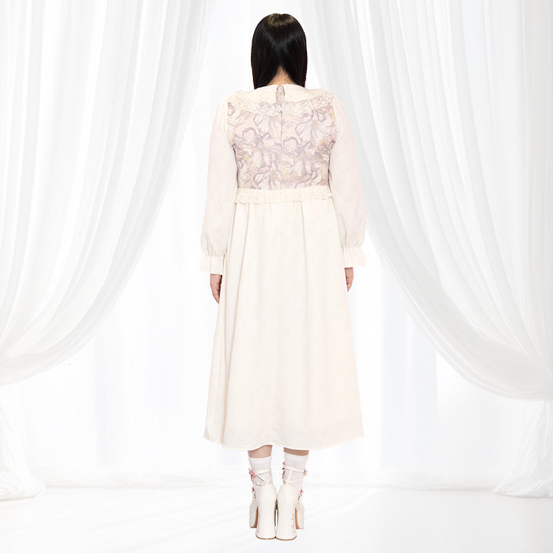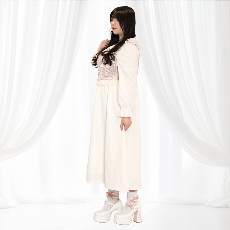 大きいサイズ レディース 白桃ミルクの花影ロングワンピース(3L/4L/5L)