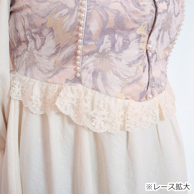 大きいサイズ レディース白桃ミルクの花影ロングワンピース(3L/4L/5L)
