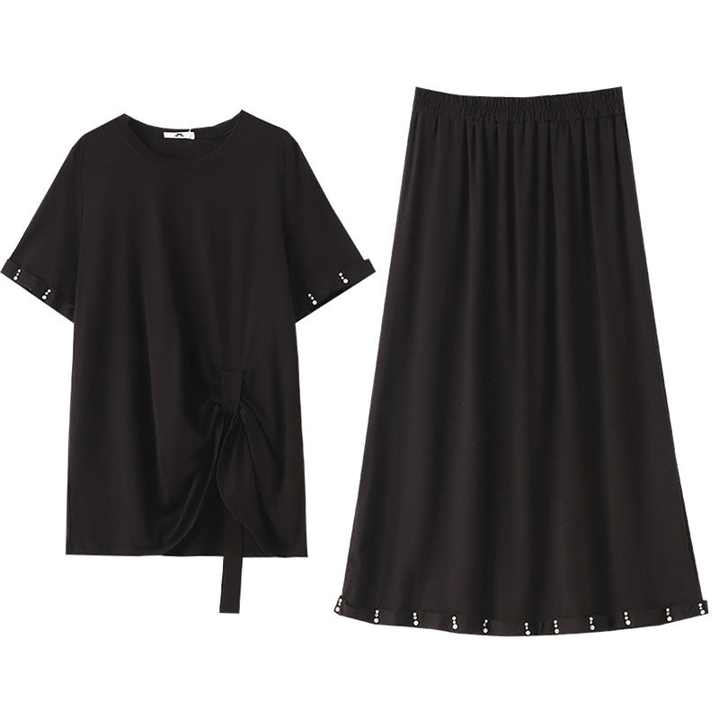 シンプルなブラックにさりげない可愛さをプラスした、大人きれいめのセットアップ。