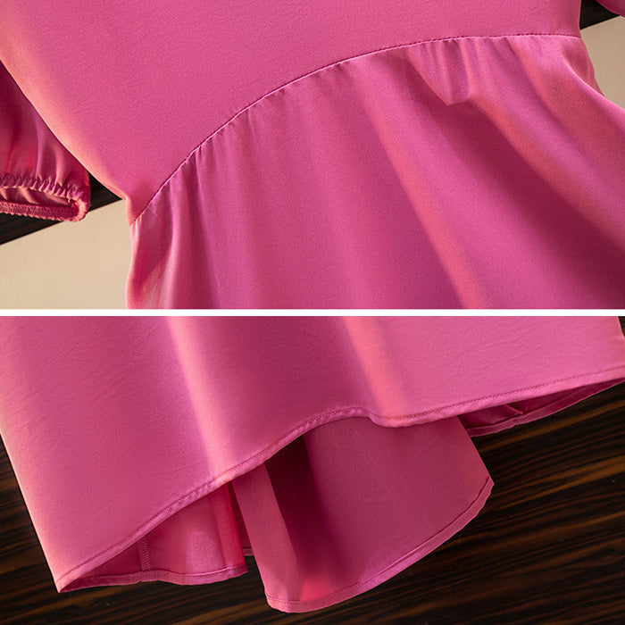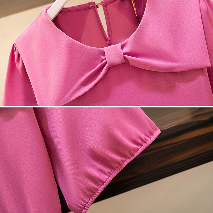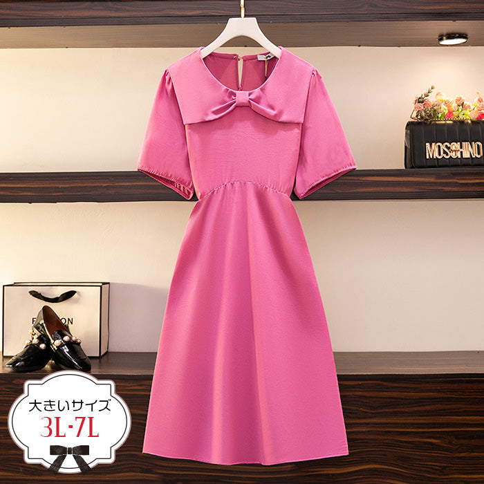 大きいサイズレディースビッグカラーボウタイピンクワンピース(3L/4L/5L/6L/7L)