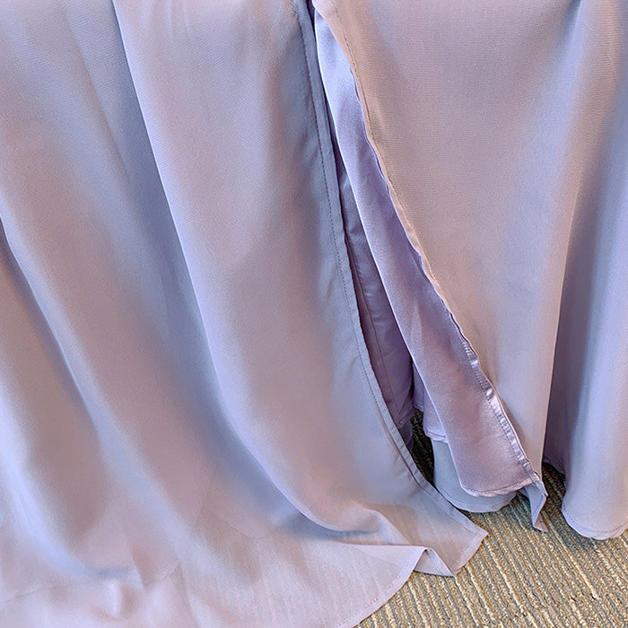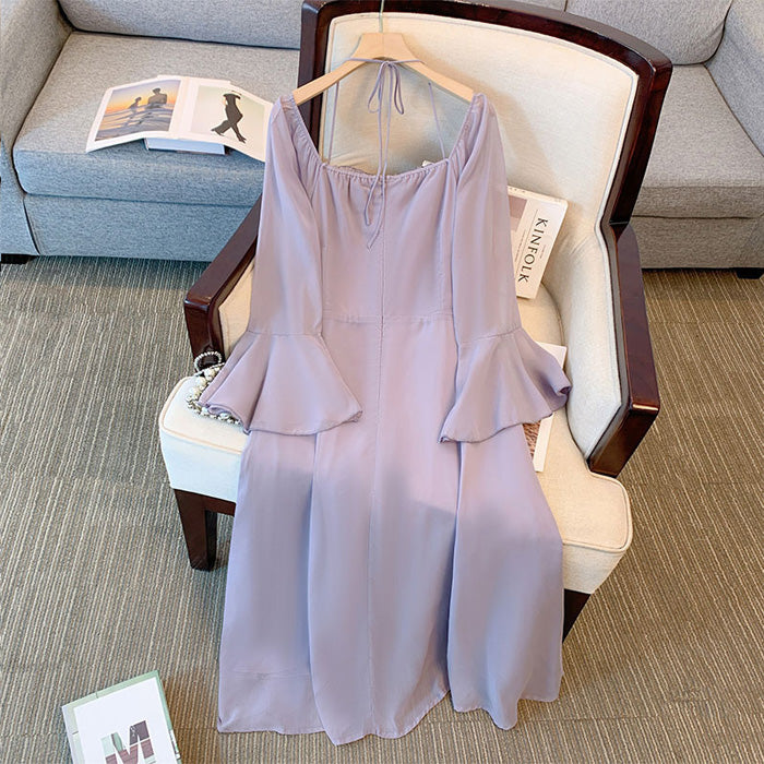 柔らかなラベンダーカラーが肌を明るく魅せる、ぽっちゃりさんのためのフレアワンピースが登場。