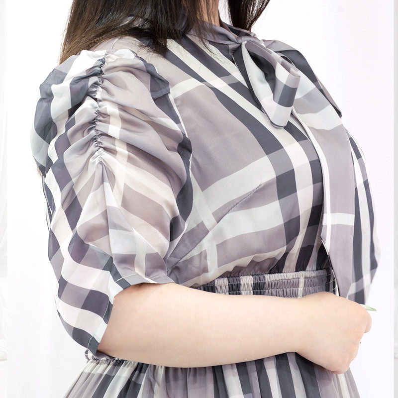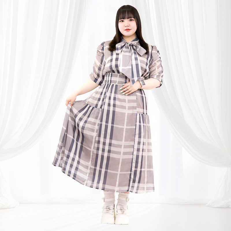 大きいサイズレディースパルファムチェック・ワンピース グレー(3L/4L/5L/6L)/Taberunosky(タベルノスキー)
