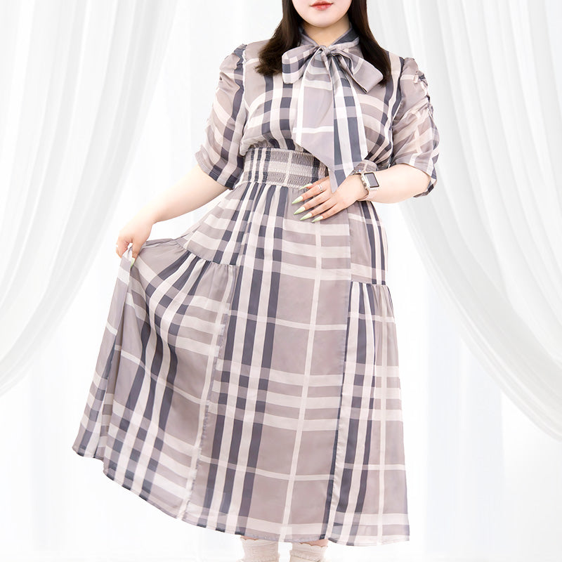 大きいサイズ専用に設計されたチェック柄のロングワンピースが新登場!