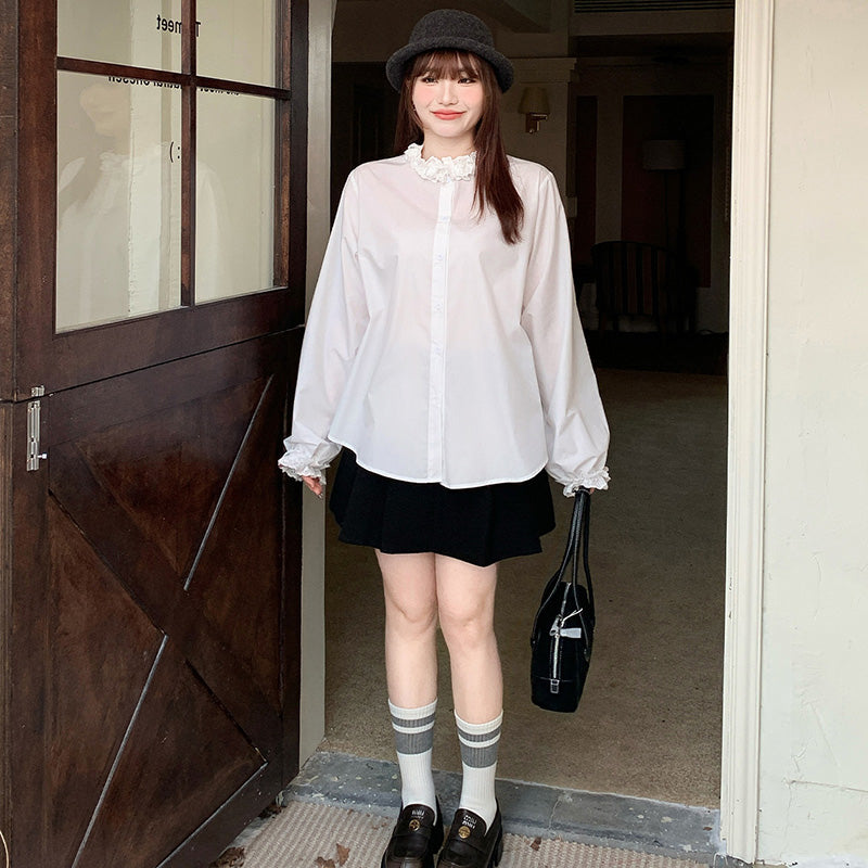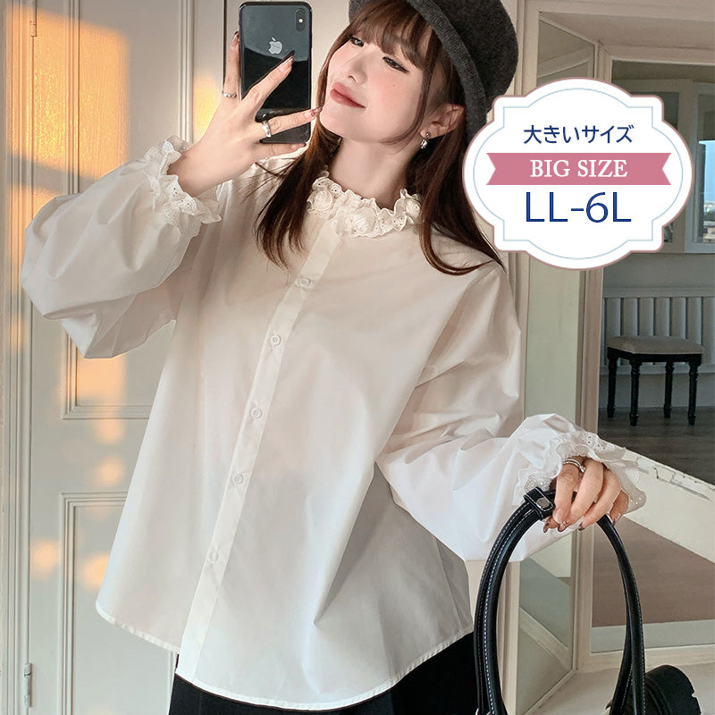 清楚で愛らしい印象を叶える「レースフラワーカラーブラウス」が ぽっちゃり女子さん専用サイズで登場しました♡