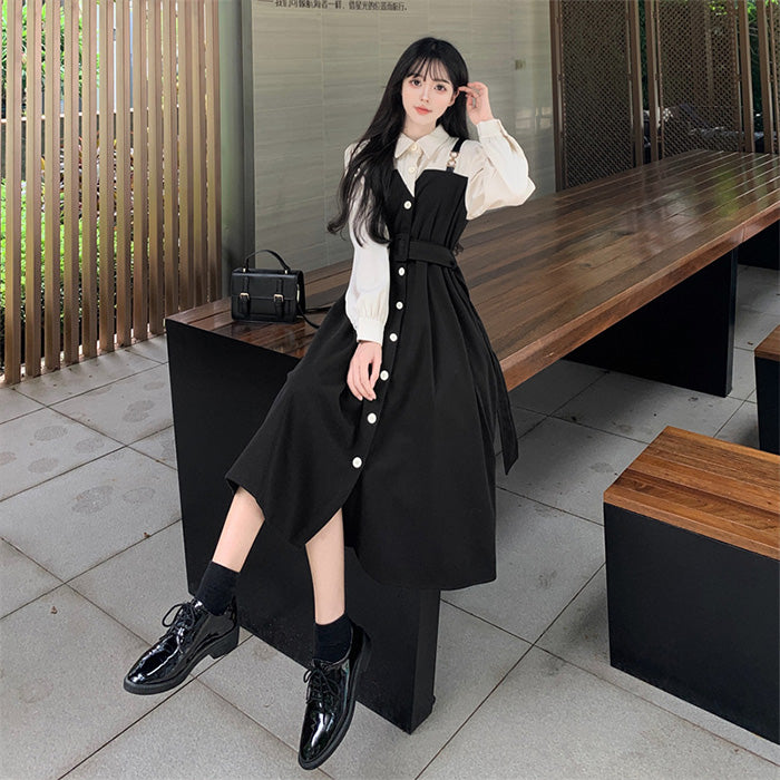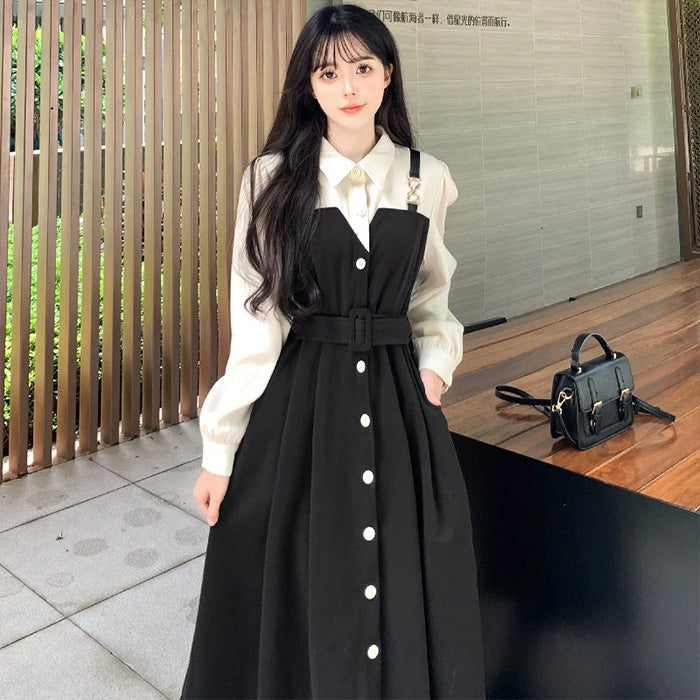 大きいサイズレディースぽっちゃりさんのホワイトボタンフレアワンピース(L/2L/3L/4L/5L)