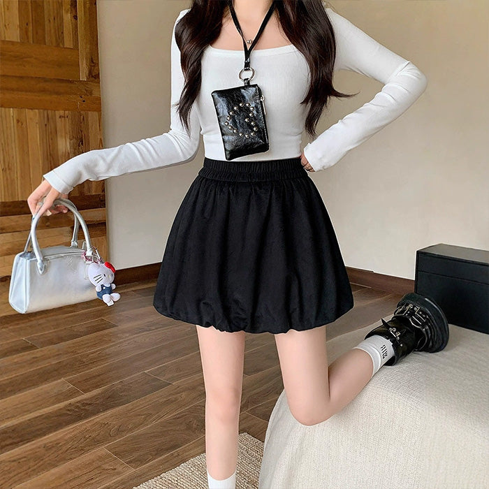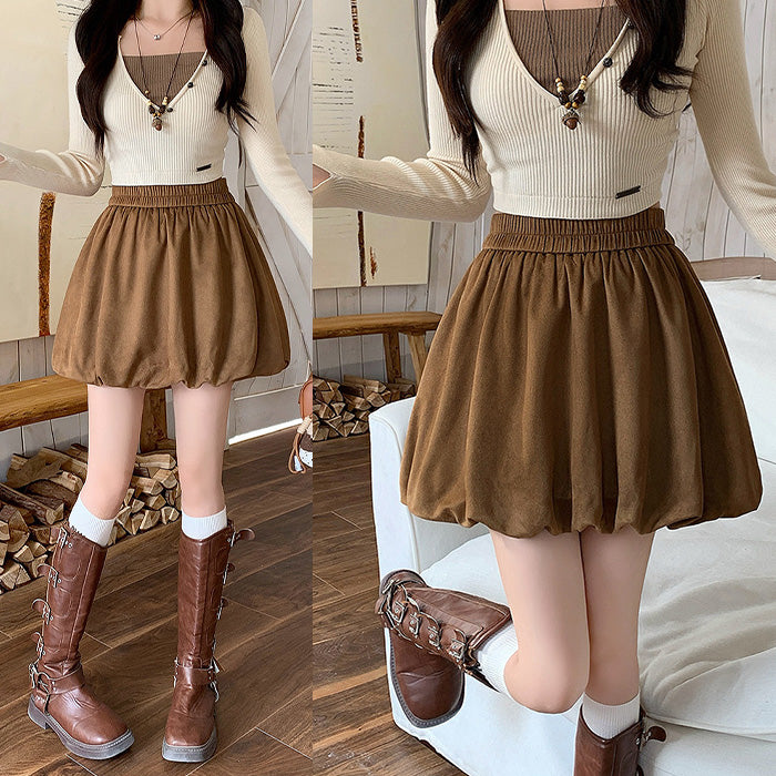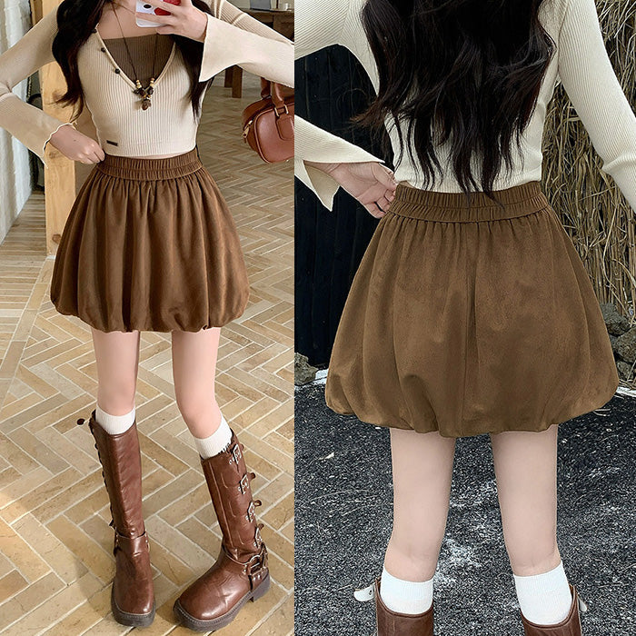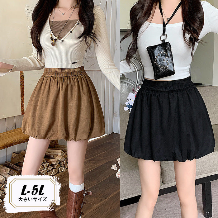 大きいサイズレディースふんわりバルーンシルエット スエード調スカート(L/LL/3L/4L/5L)