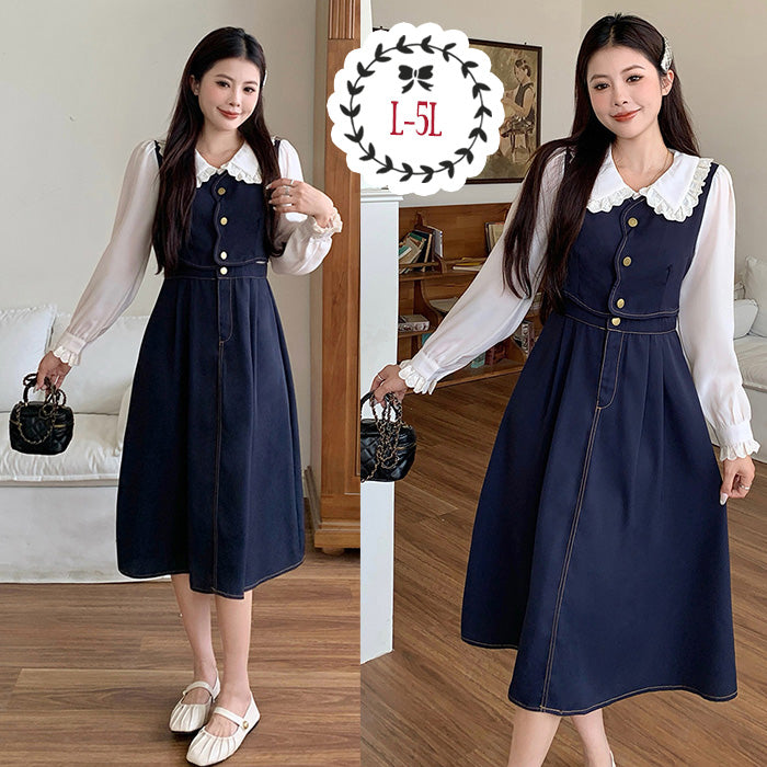 大きいサイズレディースクラシカルレースカラーワンピース(L/LL/3L/4L/5L)