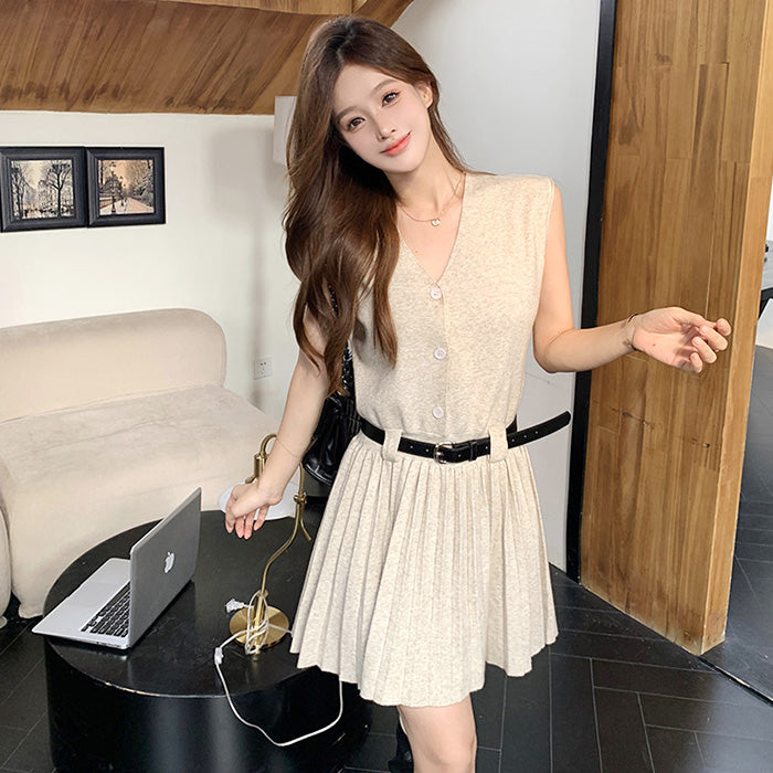 動くたびに揺れるプリーツスカートが、さりげなく女性らしさを引き立てます。