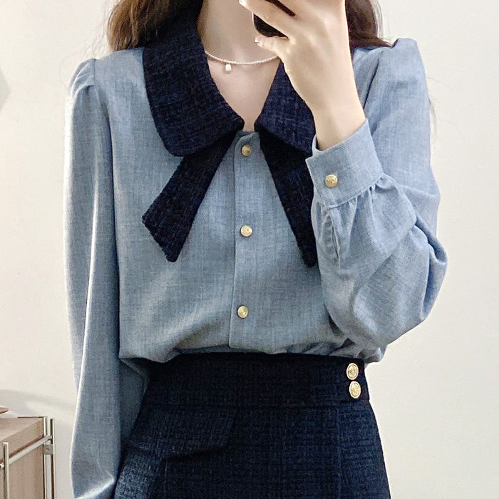 ボリューム袖とリボン付きの襟で、1枚でも着映えするフェミニンスタイルを叶えます。