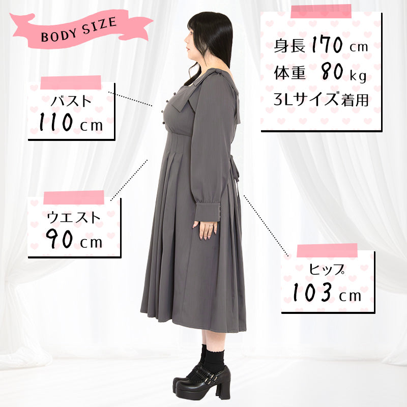 大きいサイズレディースシュガーグレーボンボン・リボンワンピース(3L/4L/5L/6L)/Taberunosky(タベルノスキー)