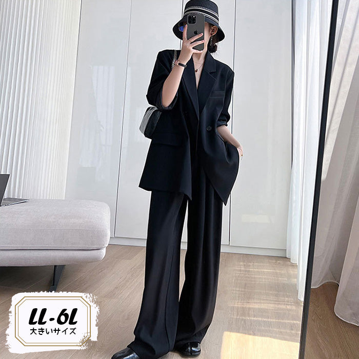大きいサイズレディースモードエアリー・リラックス黒セットアップ(LL/3L/4L/5L/6L)