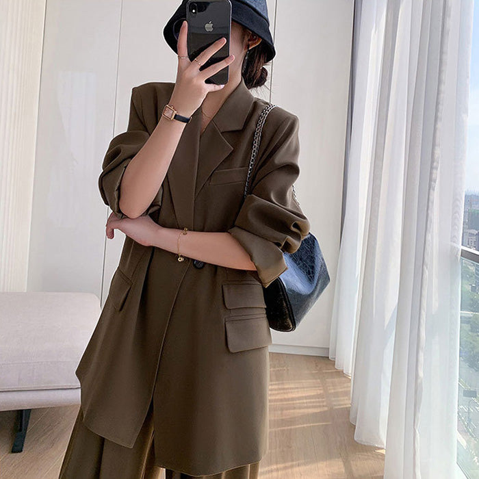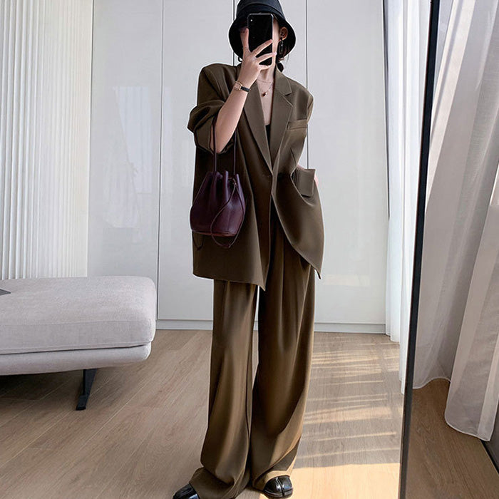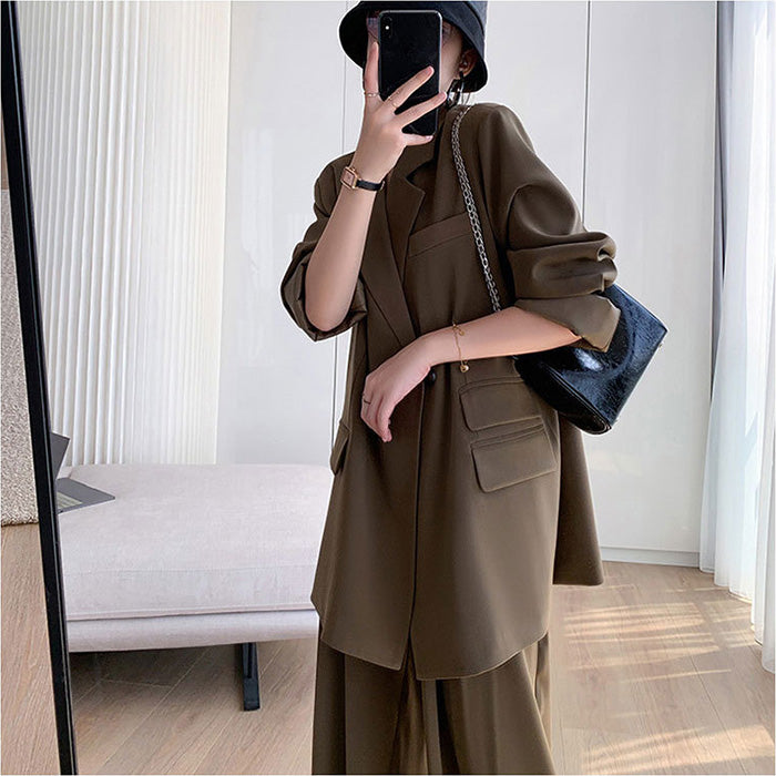 大きいサイズレディースモードエアリー・リラックス茶セットアップ(LL/3L/4L/5L/6L)