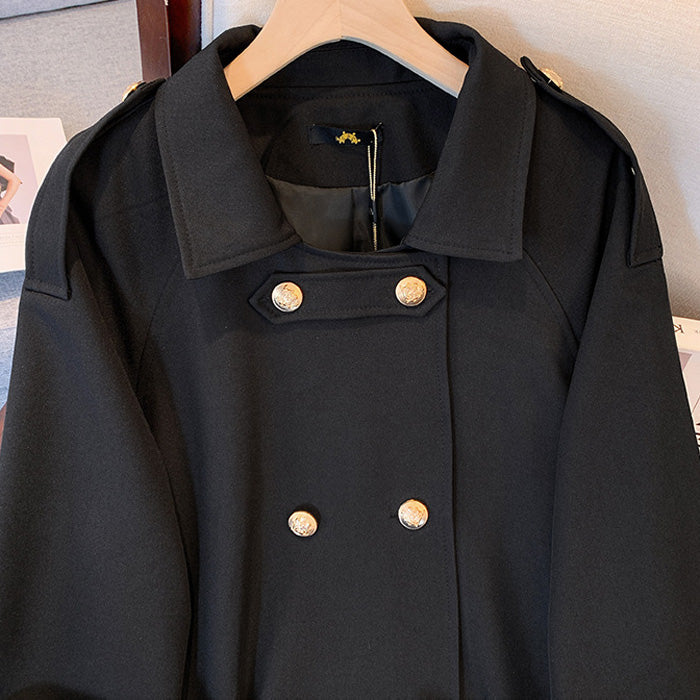 上品な光沢と落ち着いた存在感を放つ、大きいサイズのトレンチコート。