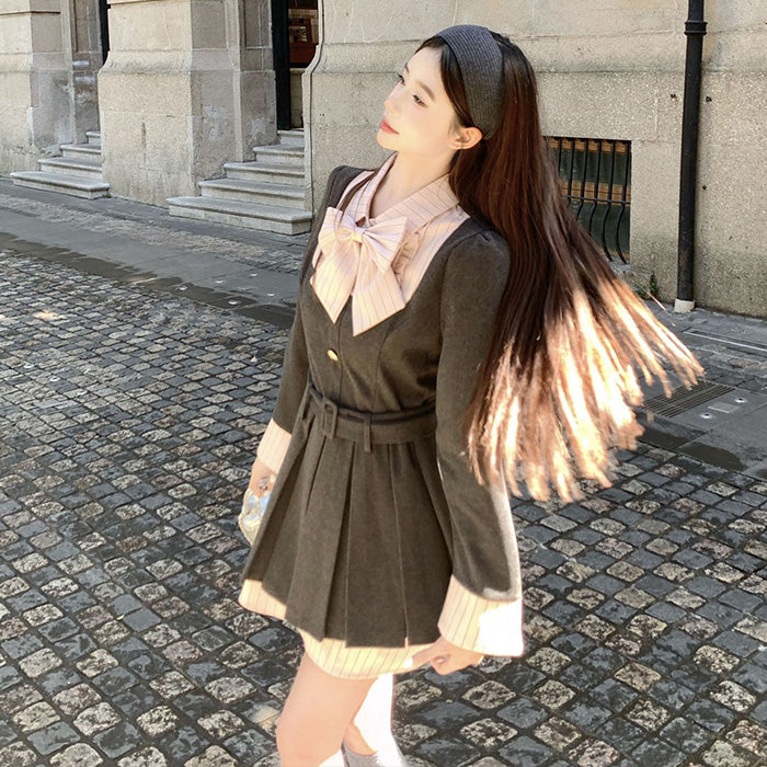 クラシカルなプリーツスカートと大きなリボンが印象的で、ぽっちゃりさんの体型をきれいに見せながら、甘く上品な雰囲気を引き立てます。