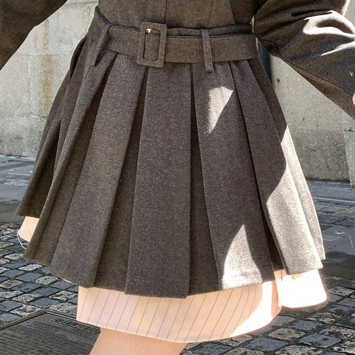ウエストにはベルト付きで、自然にくびれをメイク。