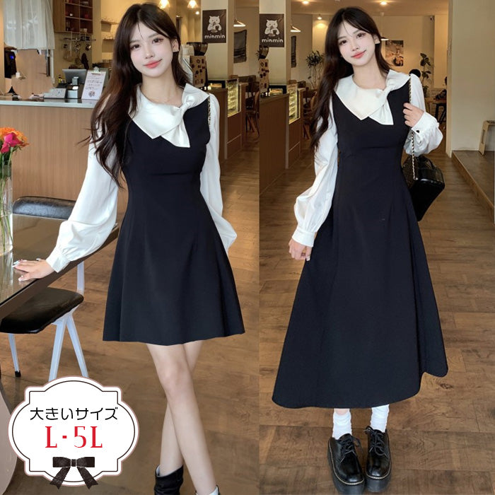 大きいサイズレディースノーブルリボン・セレクトワンピース(L/LL/3L/4L/5L)