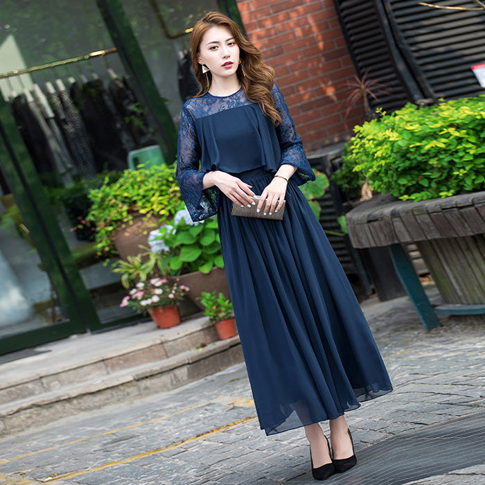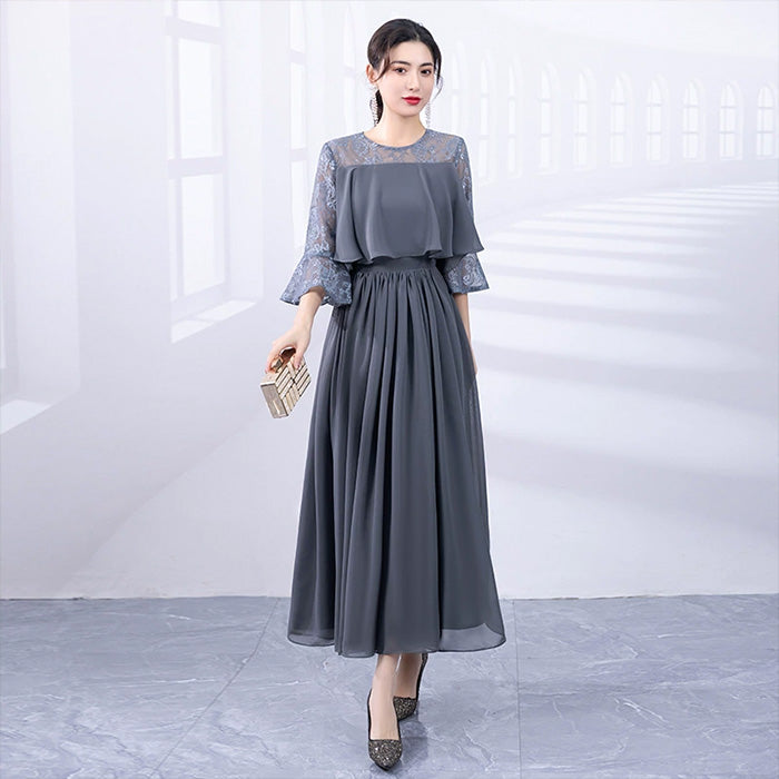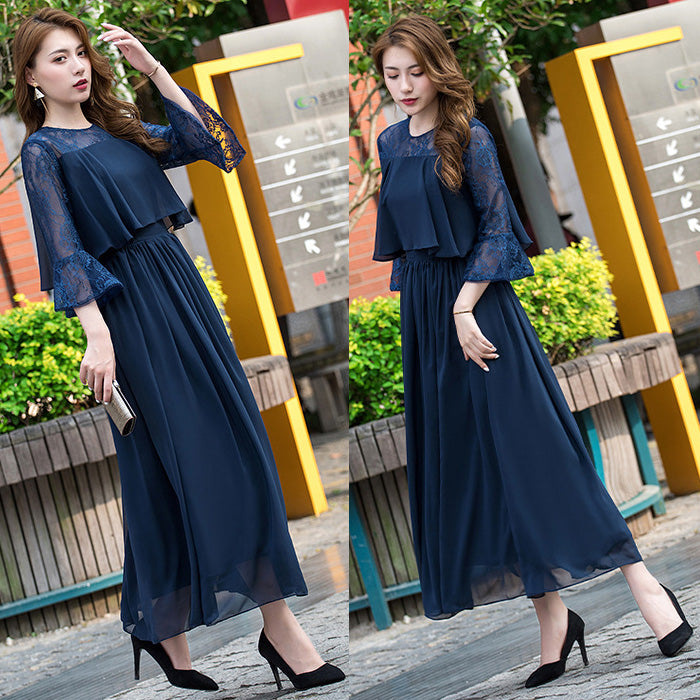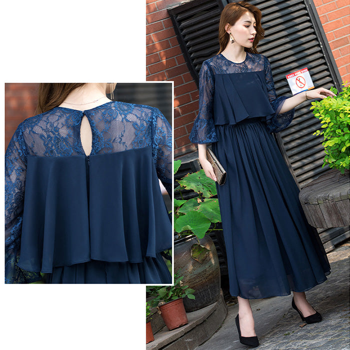 上品なレースと軽やかなシフォンを重ねた、大きいサイズのオケージョンドレスワンピース。