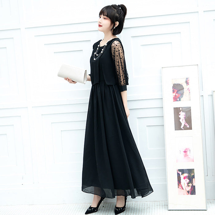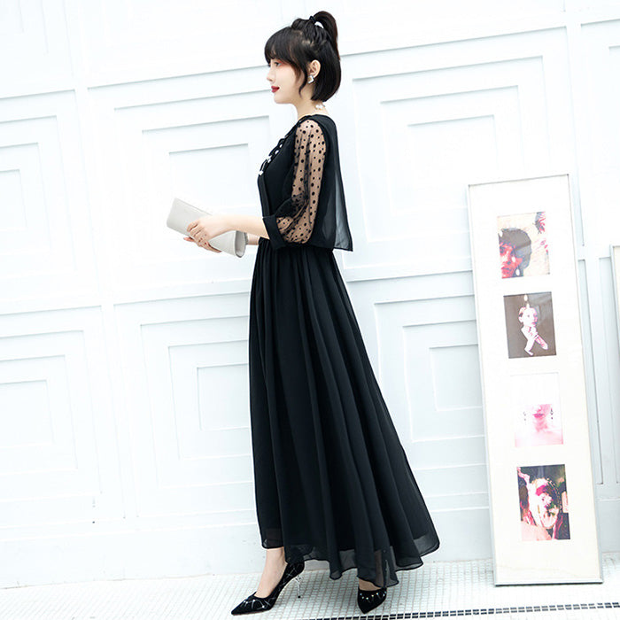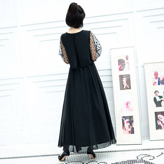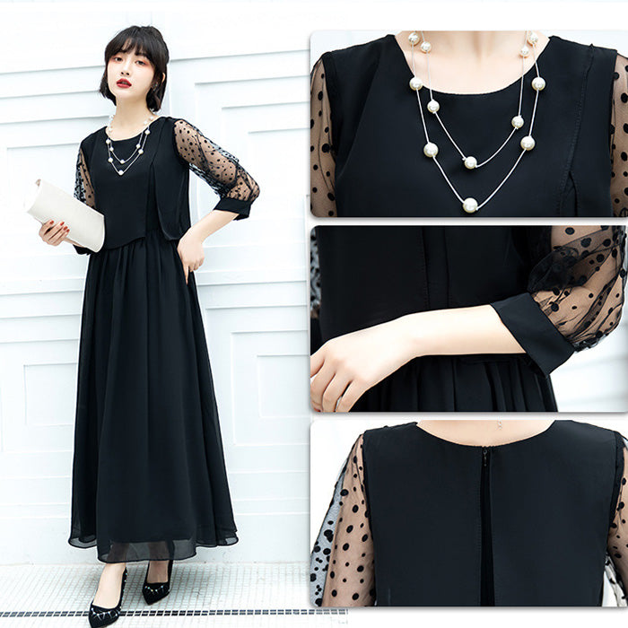 大きいサイズレディースシフォン袖のノワール・エレガンスドレスワンピース(3L/4L/5L/6L)オケージョン/結婚式