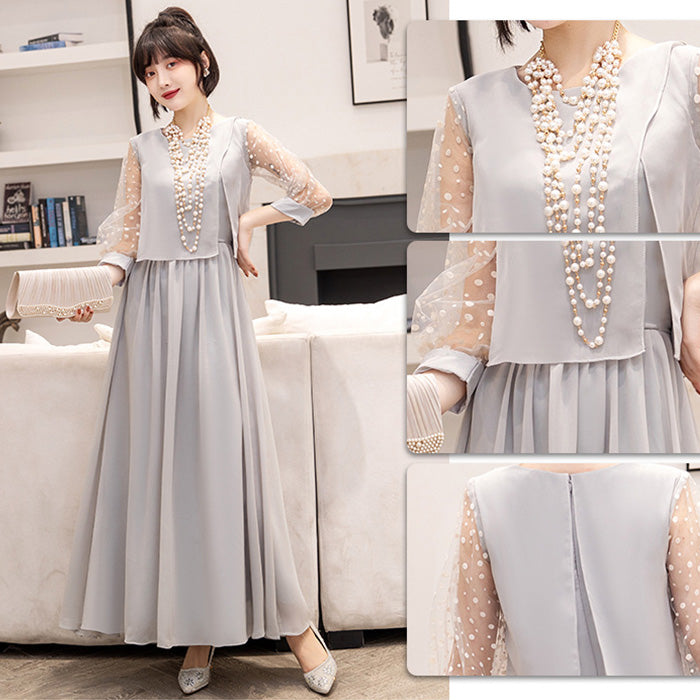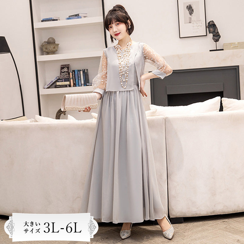 大きいサイズレディースシフォン袖のグリ・エレガンスドレスワンピース(3L/4L/5L/6L)オケージョン/結婚式